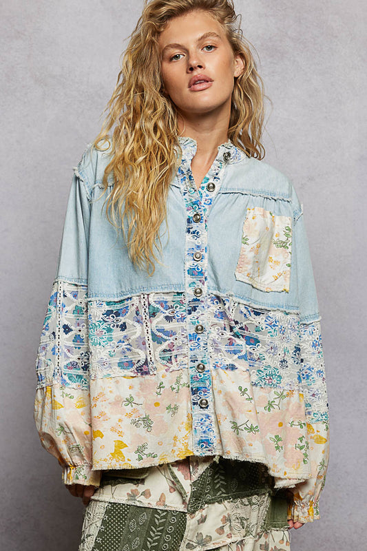 POL プリント切替 バルーンスリーブジャケット