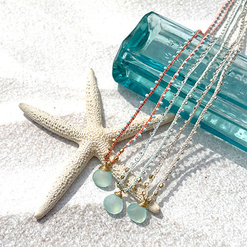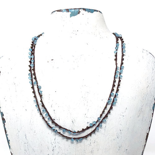マチュピチュジュエリー【ブルーカルセドニー/14kgf】 ライトグレーシルクスレッドネックレス クリアビーズ
