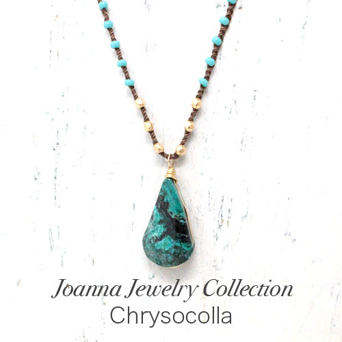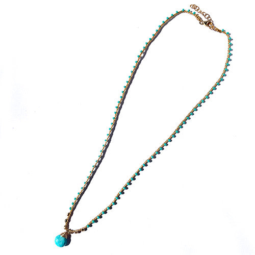 マチュピチュジュエリー【クリソコラ/14kgf】 シルクスレッドネックレス ターコイズビーズ