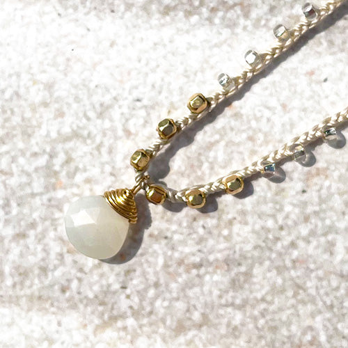 マチュピチュジュエリー【ムーンストーン/14kgf】 アイボリーシルクスレッドネックレス クリアビーズ