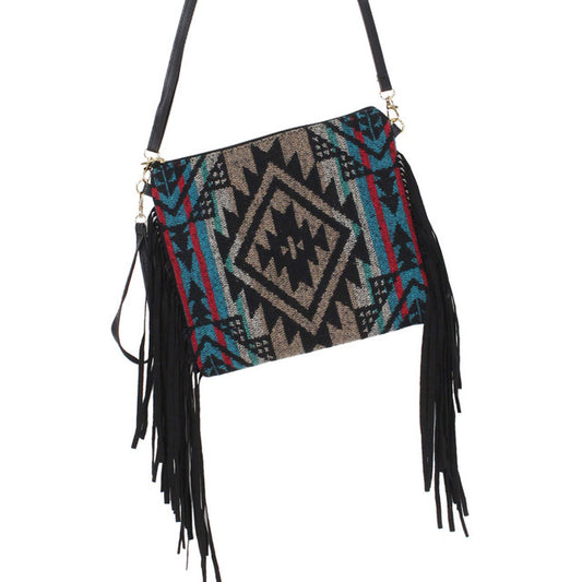 オルテガ柄 2WAYショルダーバッグ フリンジ付