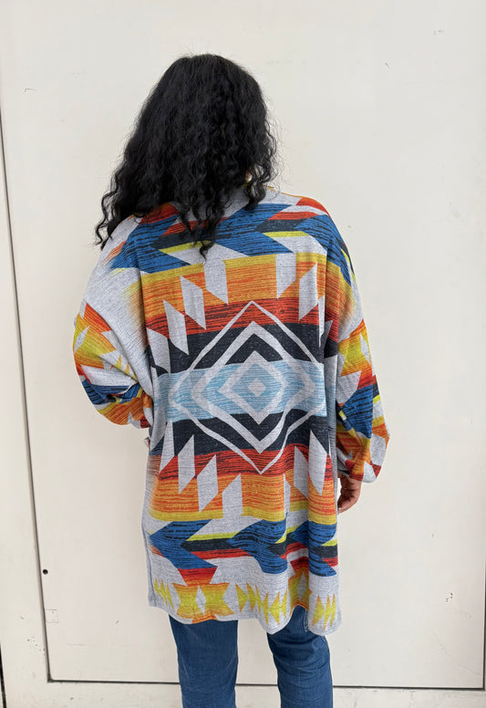 キモノスリーブ イカット風プリント ブルー Urbanista