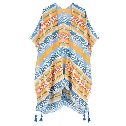 キモノスリーブ オルテガストライプ ブルー タッセル付き