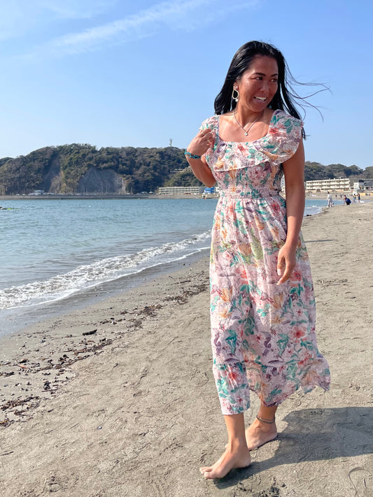 LOVE STITCH ボヘミアン フラワープリントワンピース