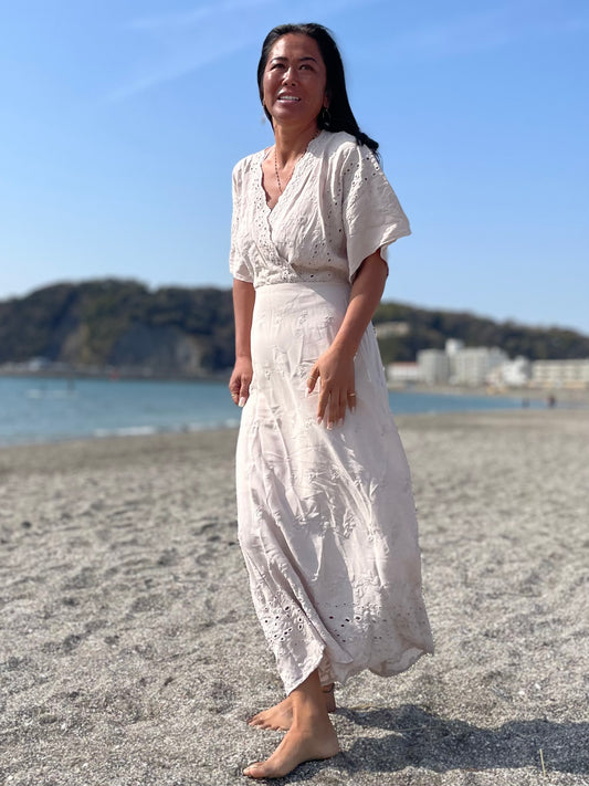 LOVE STITCH アイレット刺繍ミディワンピース SALE 30%OFF