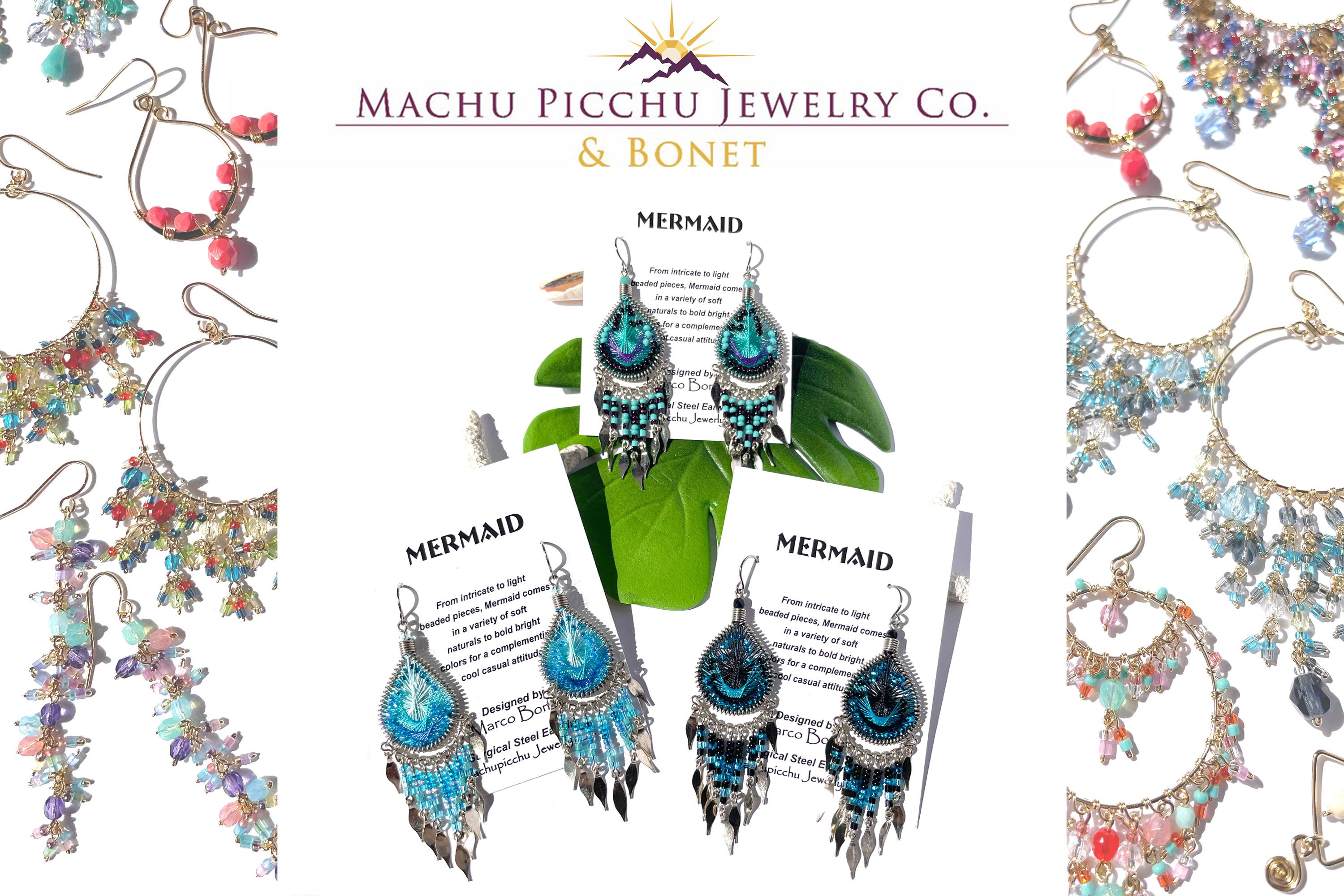 マチュピチュジュエリーは、ロサンゼルスのジュエリーブランドです。多彩なピアスの種類と鮮やかなビーズの発色、そして複雑で洗練されたデザインが特徴のブランドです。ペルーとブラジルの職人さん達の手でひとつひとつ丁寧に作られています。