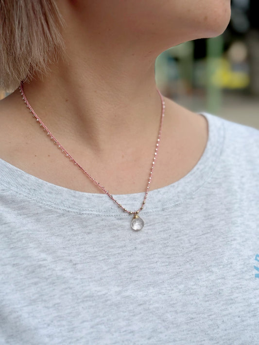 マチュピチュジュエリー【ローズクォーツ/14kgf】 ピンクシルクスレッドネックレス クリアビーズ