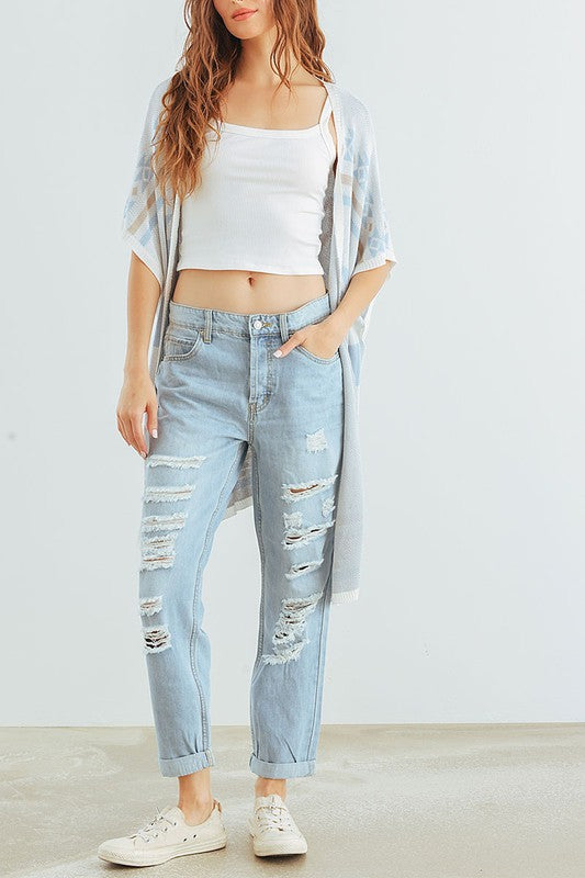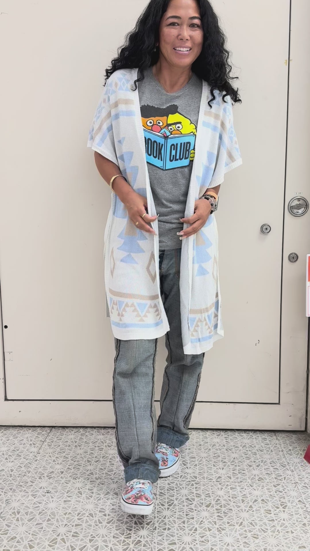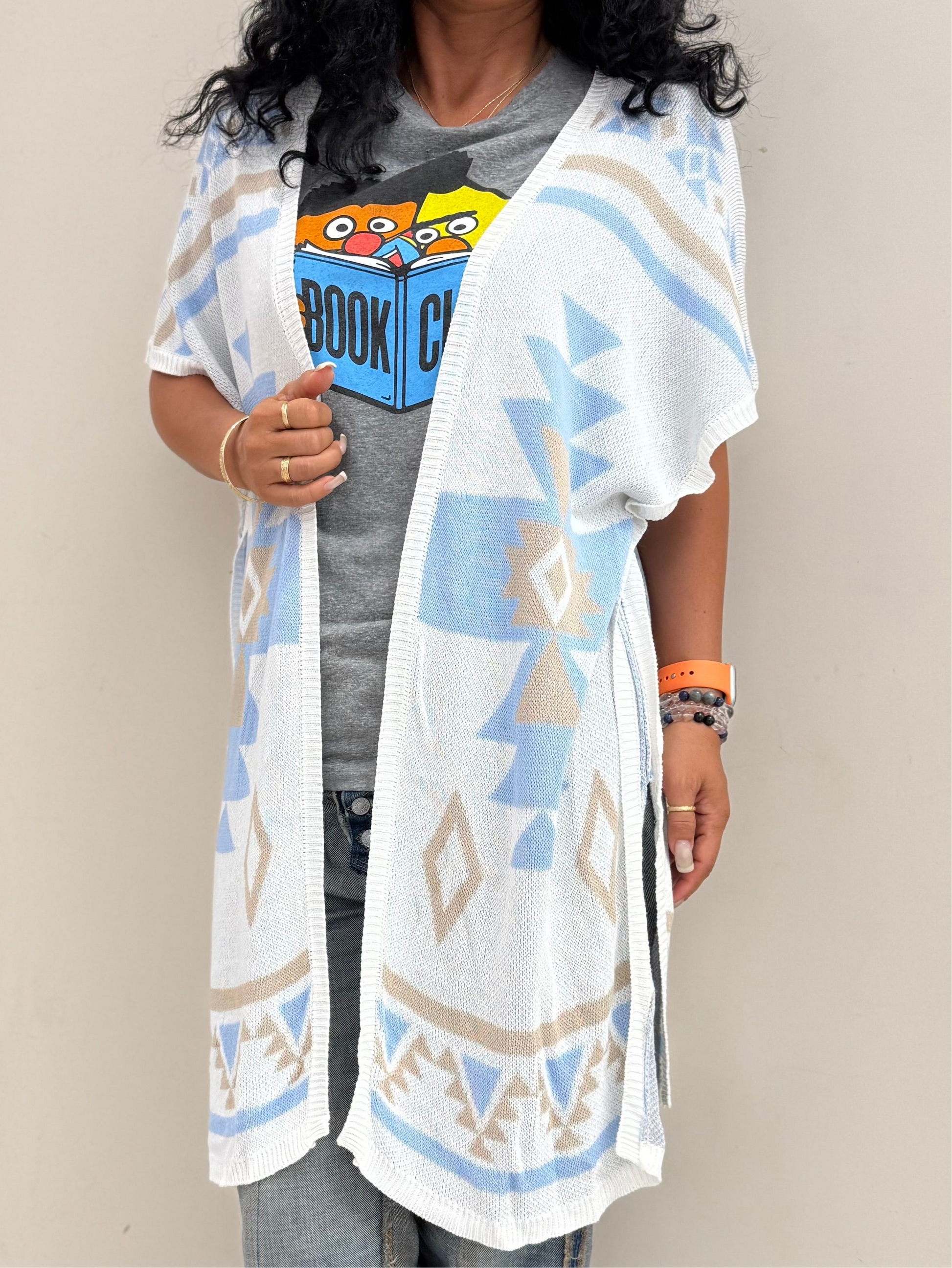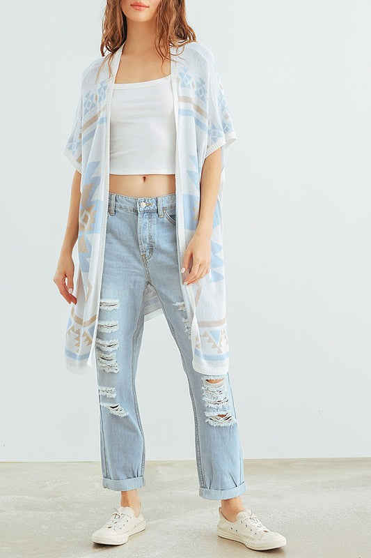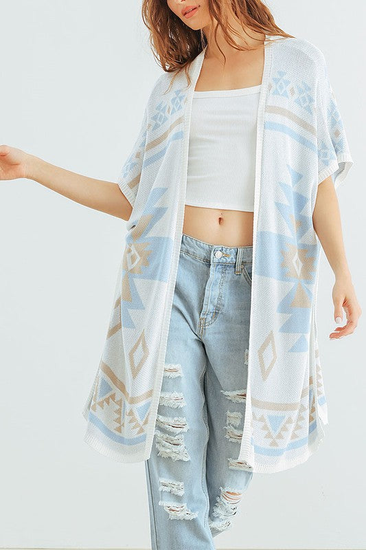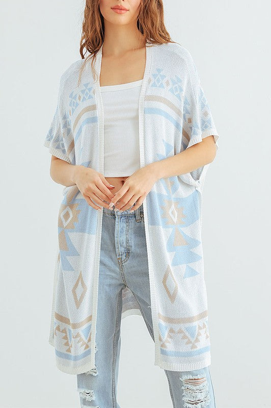LAインポート VeryJ の軽やかな羽織り心地が魅力のオルテガ柄カーディガン。