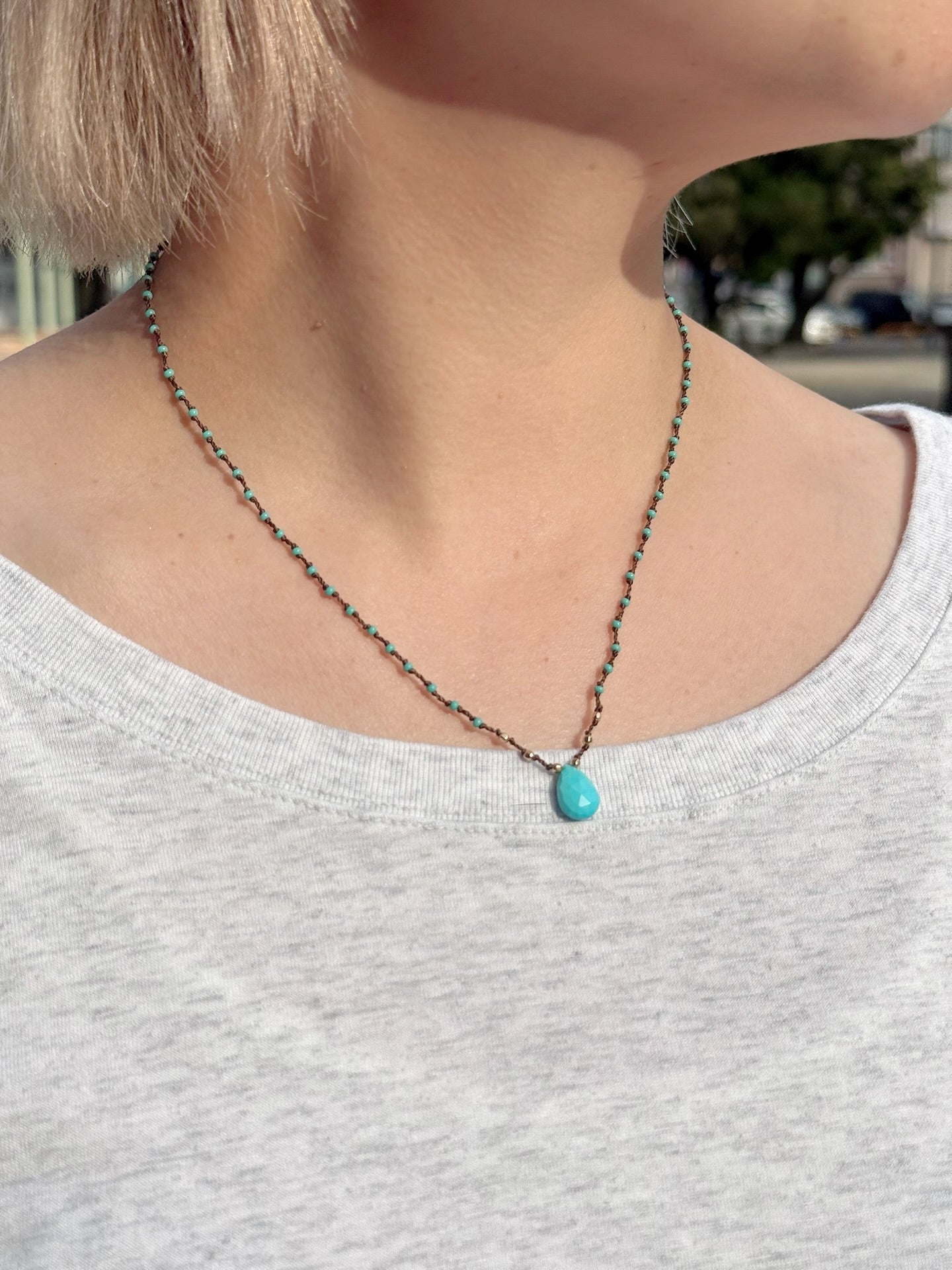 マチュピチュジュエリー【ターコイズ/14kgf】 新シルクスレッドネックレス