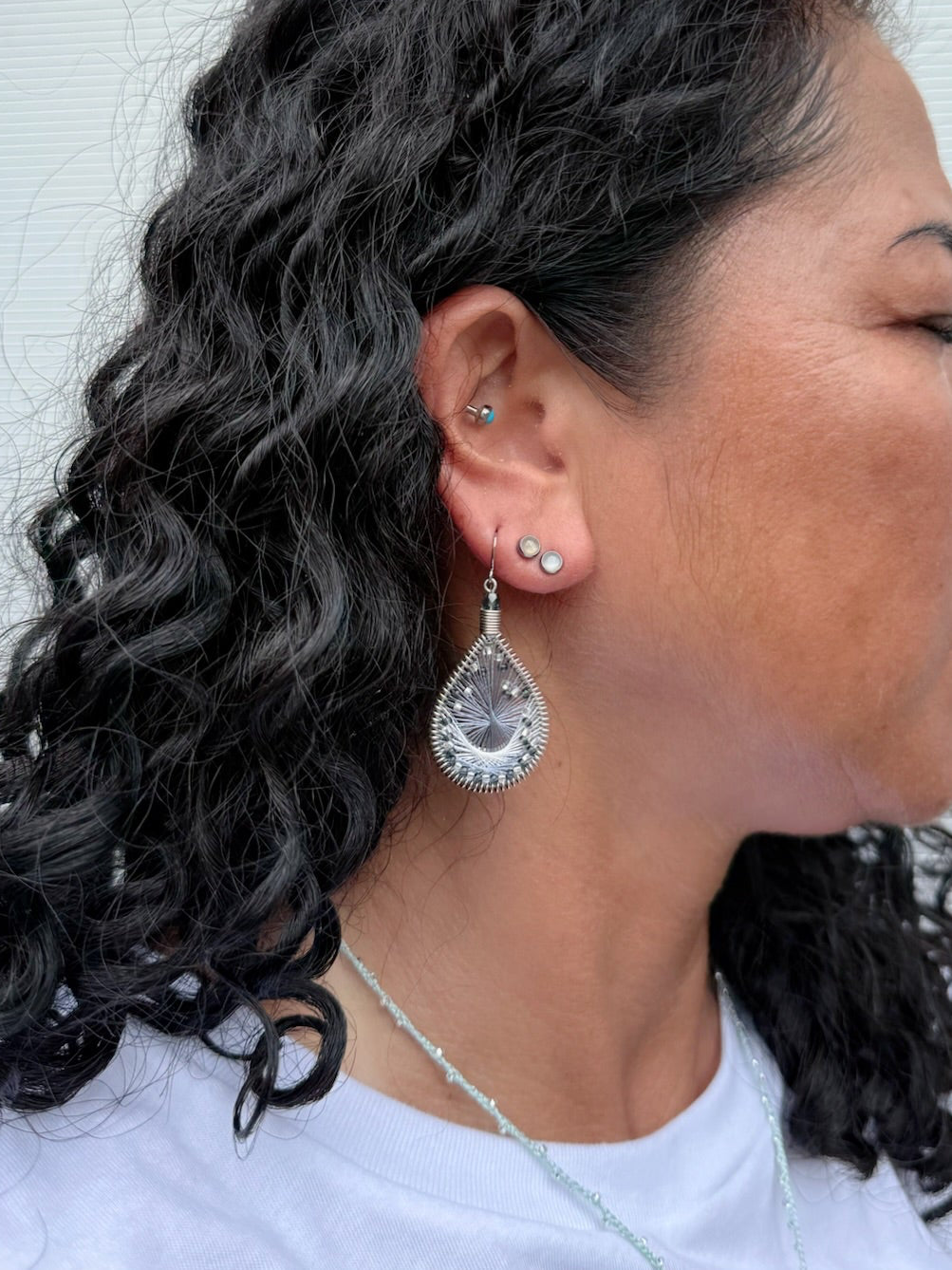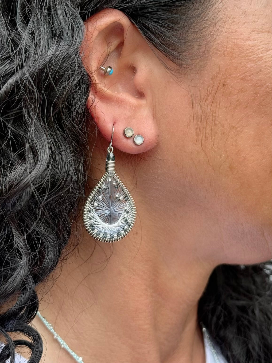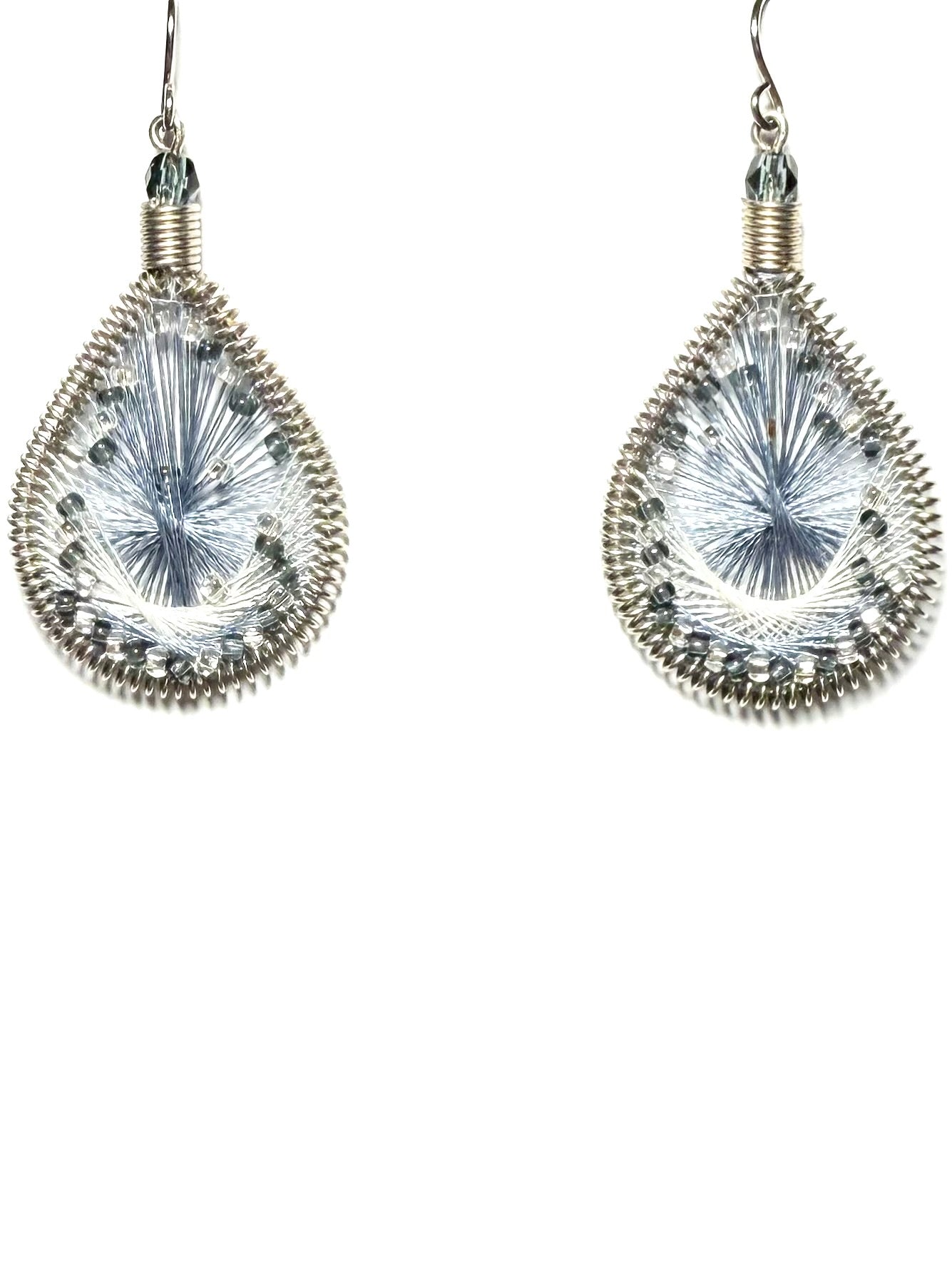 アメリカのハンドメイドジュエリー”マチュピチュジュエリー”のグラデーションがきれいなマーメイドシリーズピアス。様々な色の糸が細かくかかった中にビーズが編み込まれています。ペルーの職人さんの手でひとつひとつ丁寧に作られています。