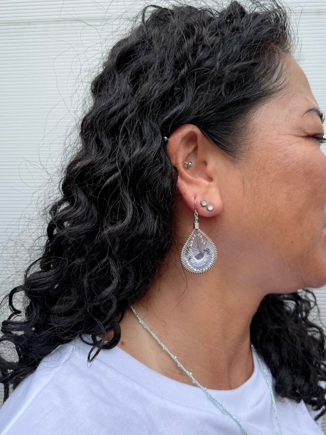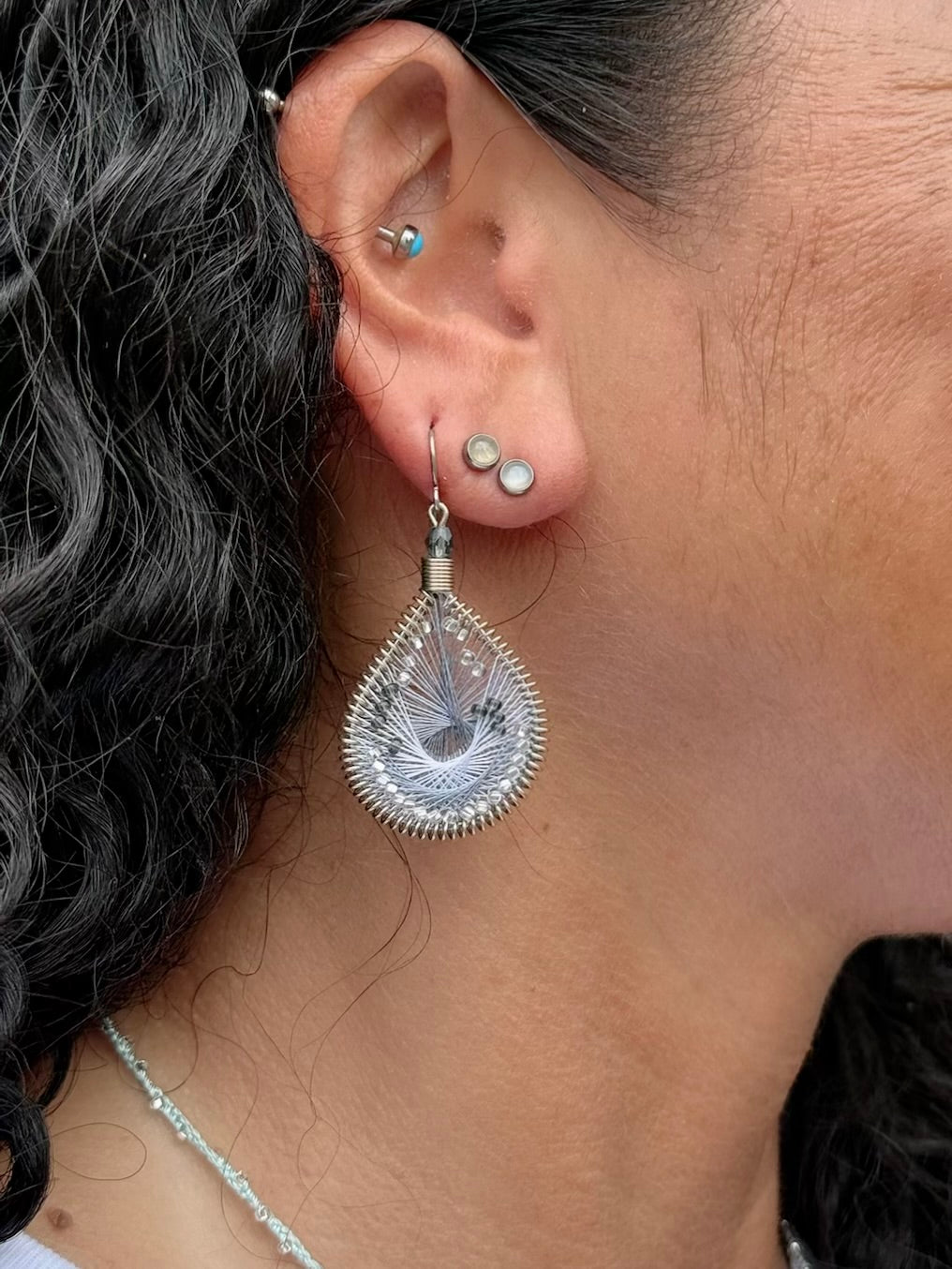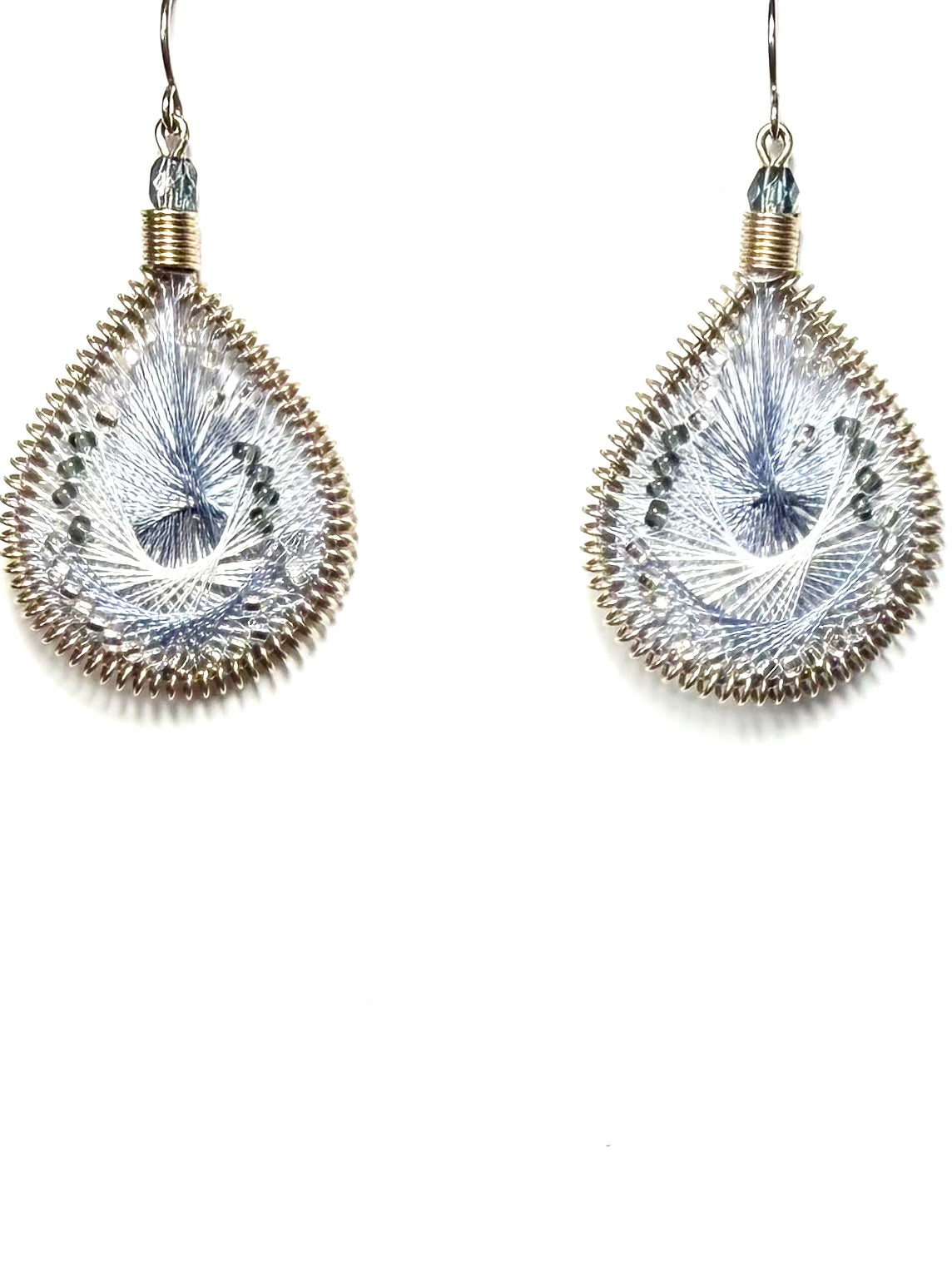アメリカのハンドメイドジュエリー”マチュピチュジュエリー”のグラデーションがきれいなマーメイドシリーズピアス。様々な色の糸が細かくかかった中にビーズが編み込まれています。ペルーの職人さんの手でひとつひとつ丁寧に作られています。