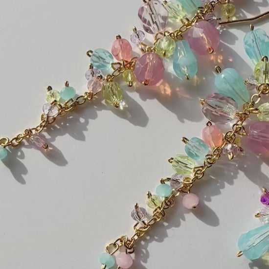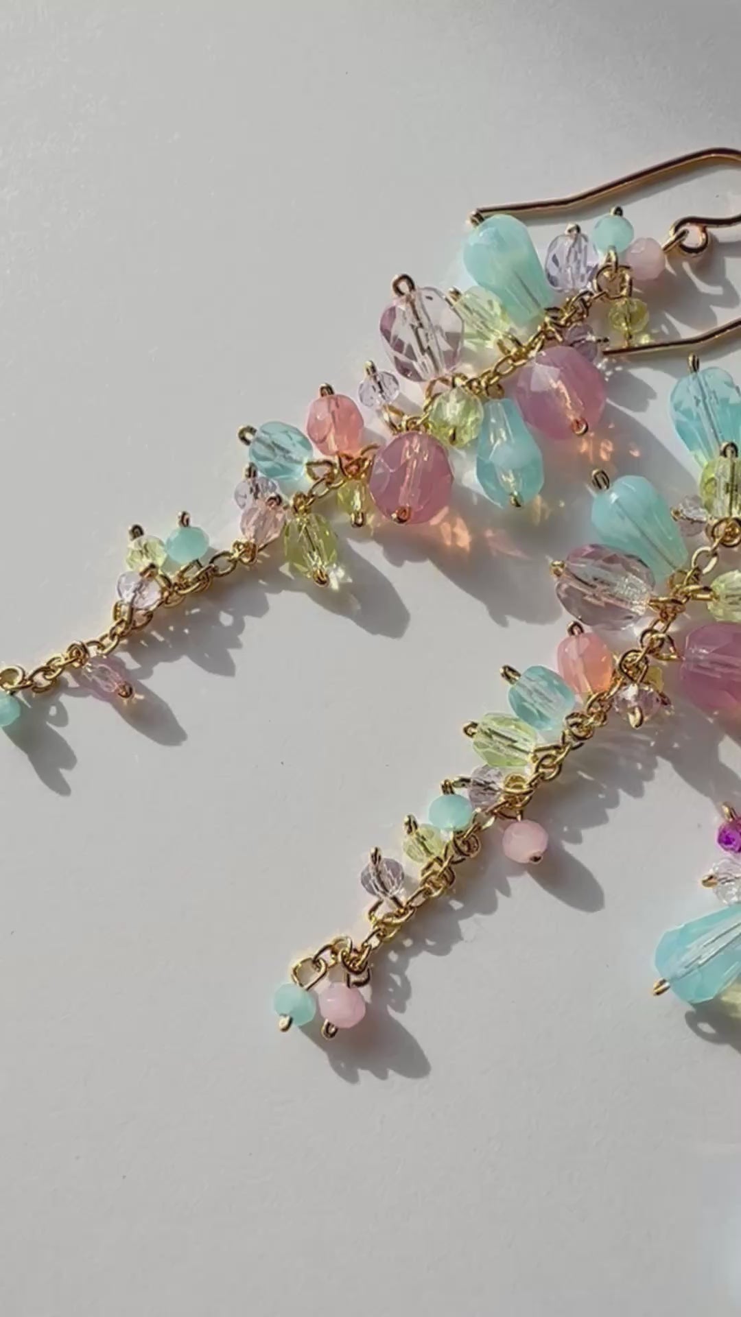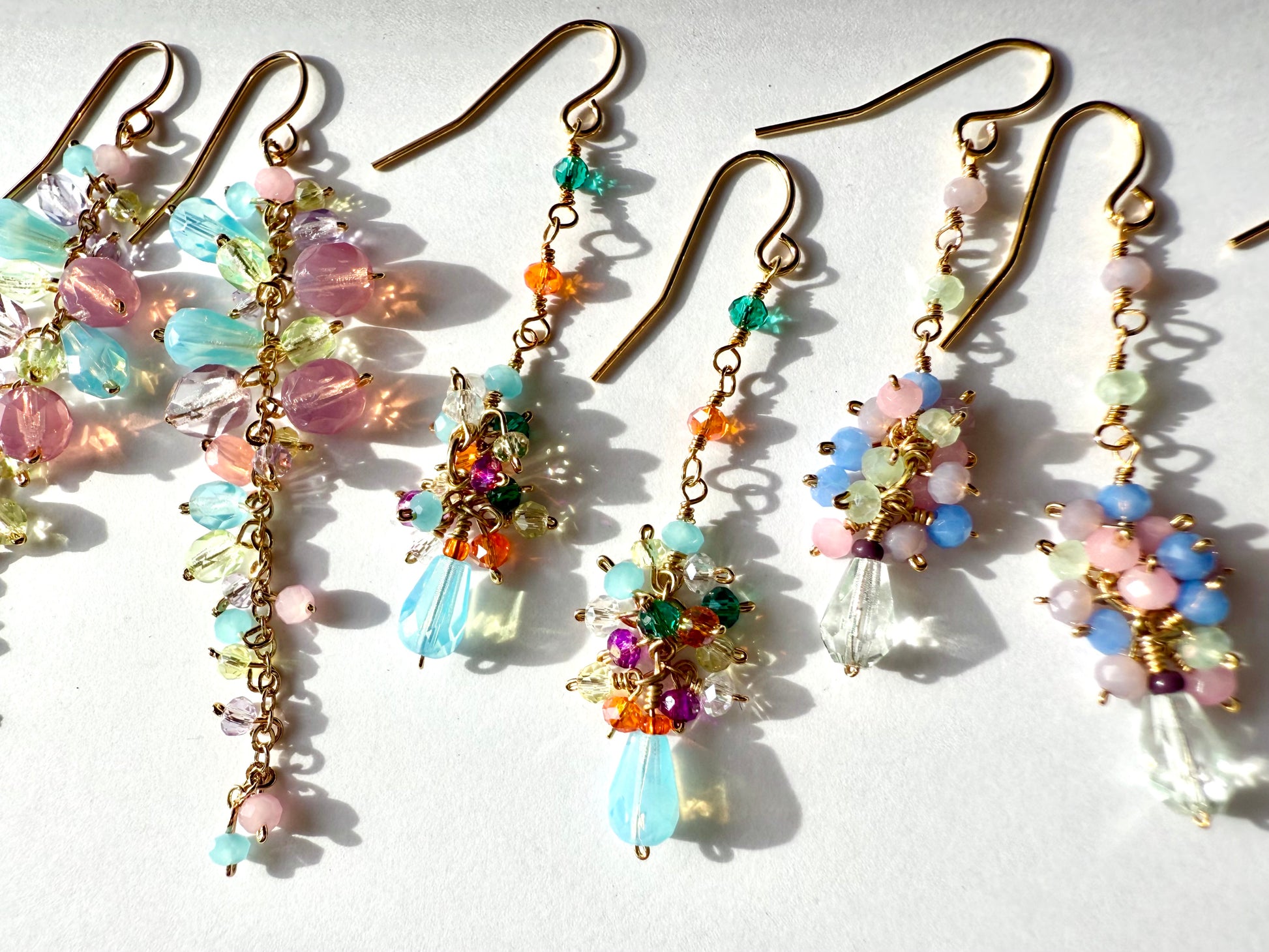 マルチカラーのビーズがさりげなくきらめき、耳元に彩りと立体感をプラスしてくれます。