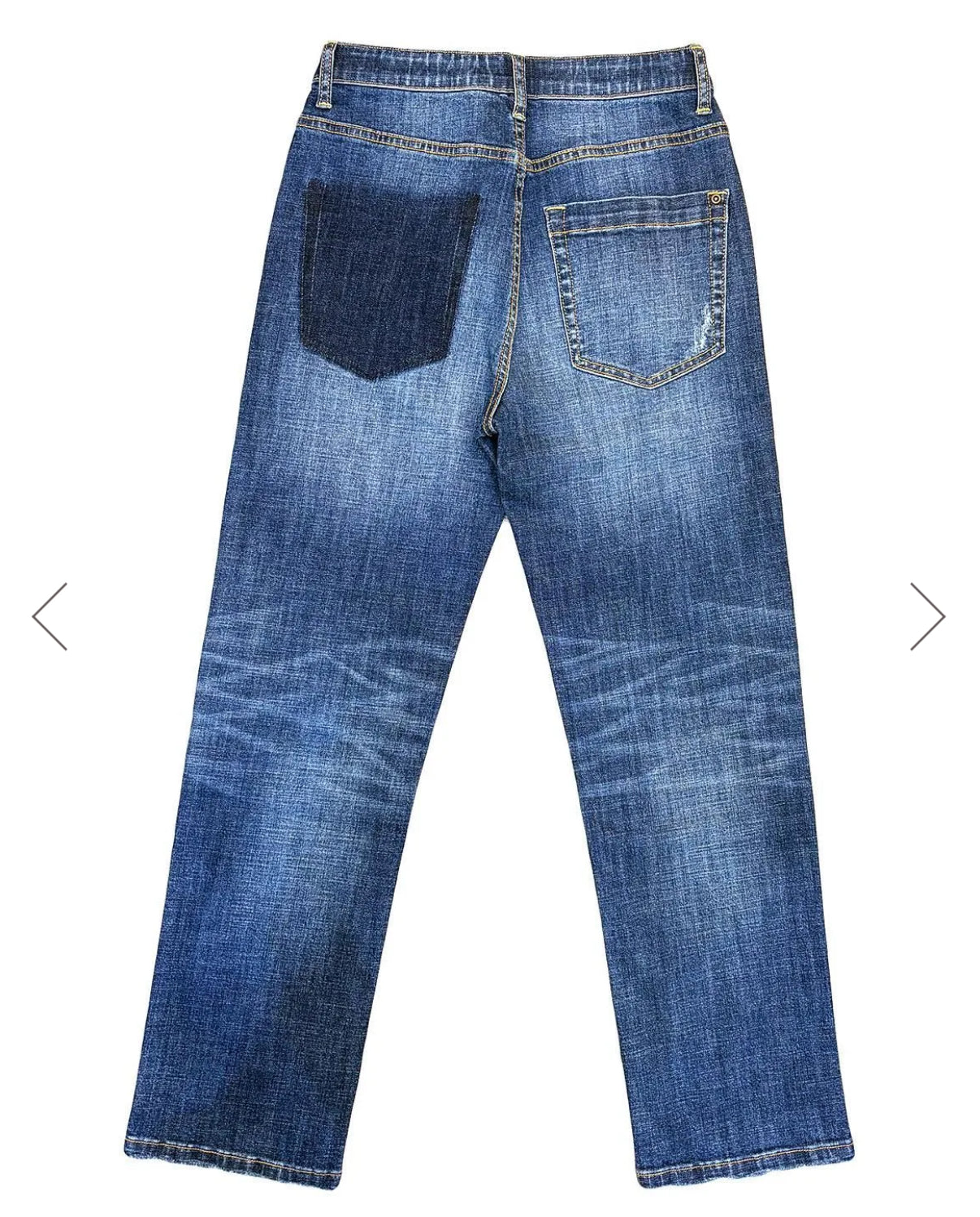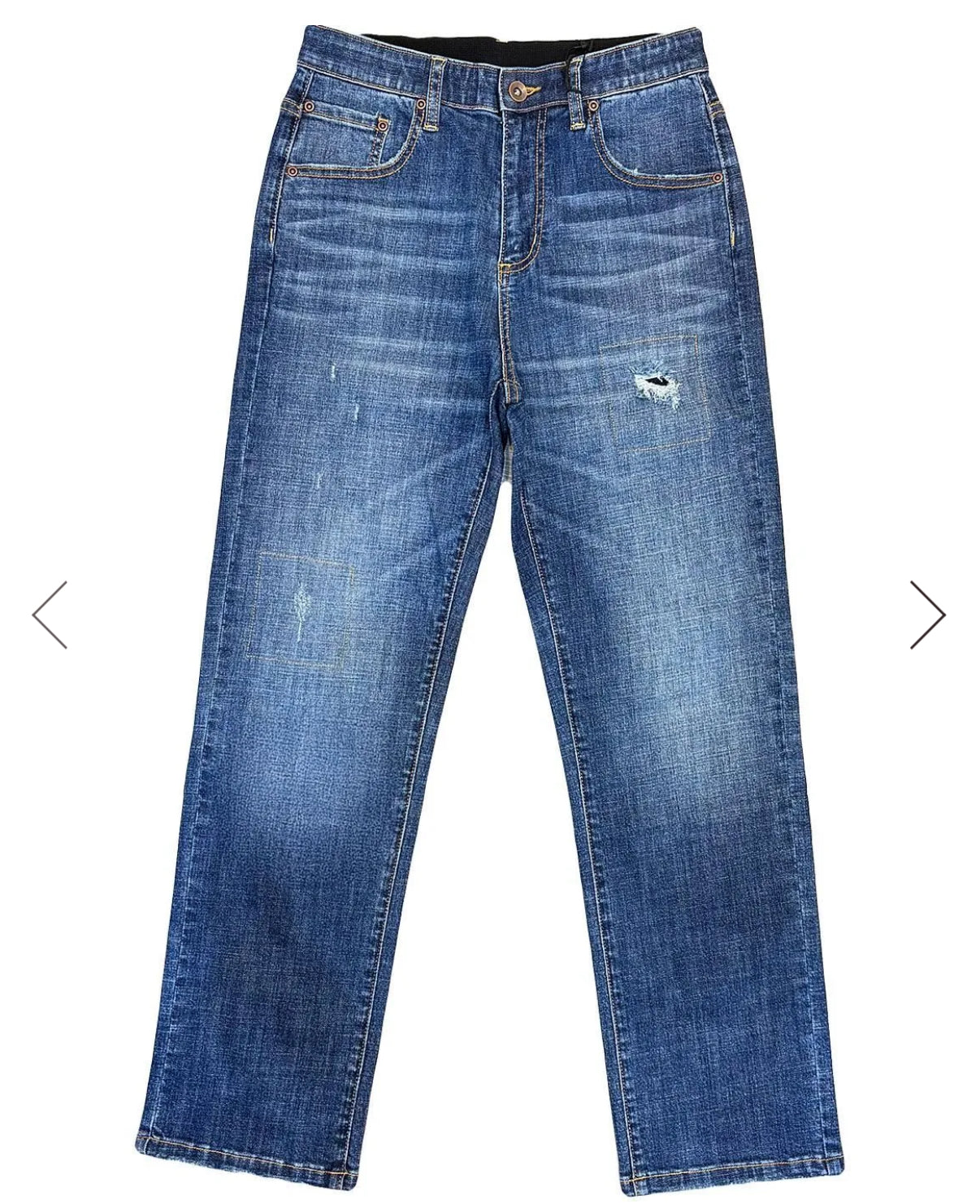 ウォッシュ加工やダメージ加工の仕上がりのよさは、伸び伸びに見えない程です。太ももの小さなダメージ加工は肌が見えないよう内側から当て布がしてあり、年齢問わずで履いていただけます。