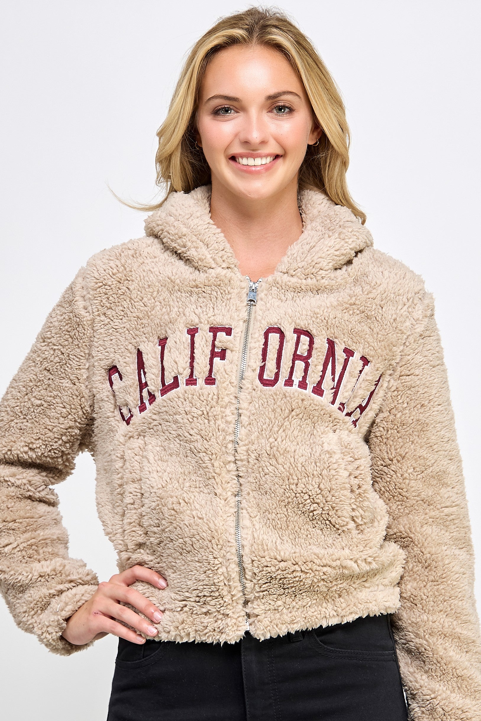ボア、フード付き、ジッパー、両脇ポケット、刺繍■素材・原産国・サイズ
