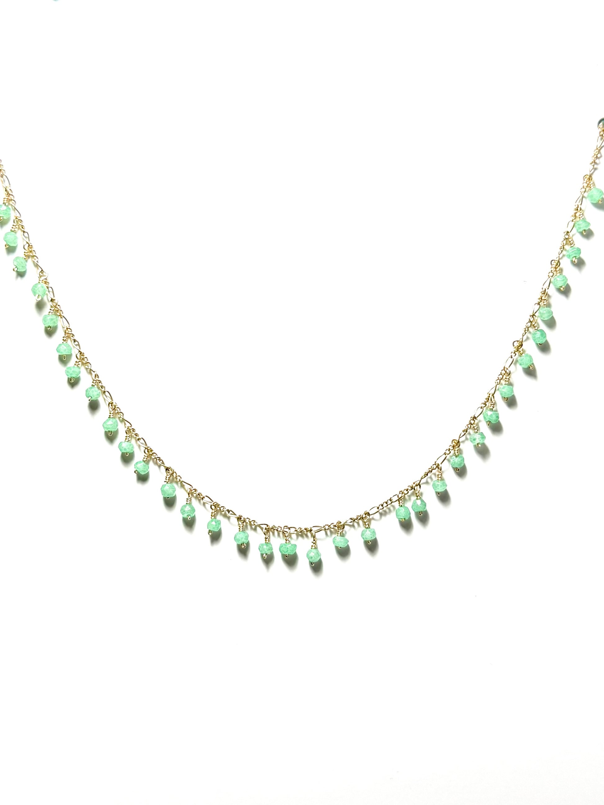やわらかなミントグリーンが印象的な、クリソプレーズのネックレス。
