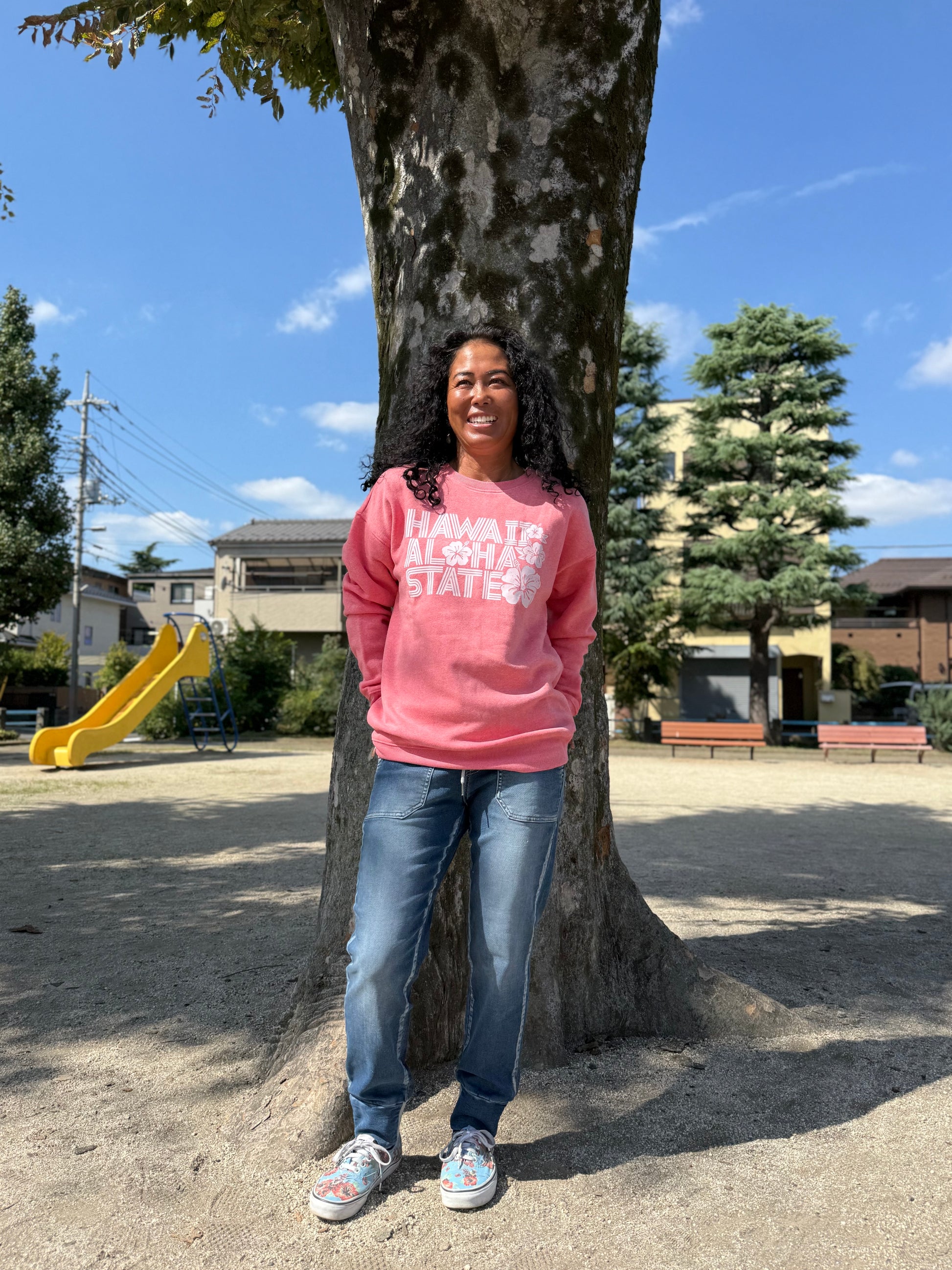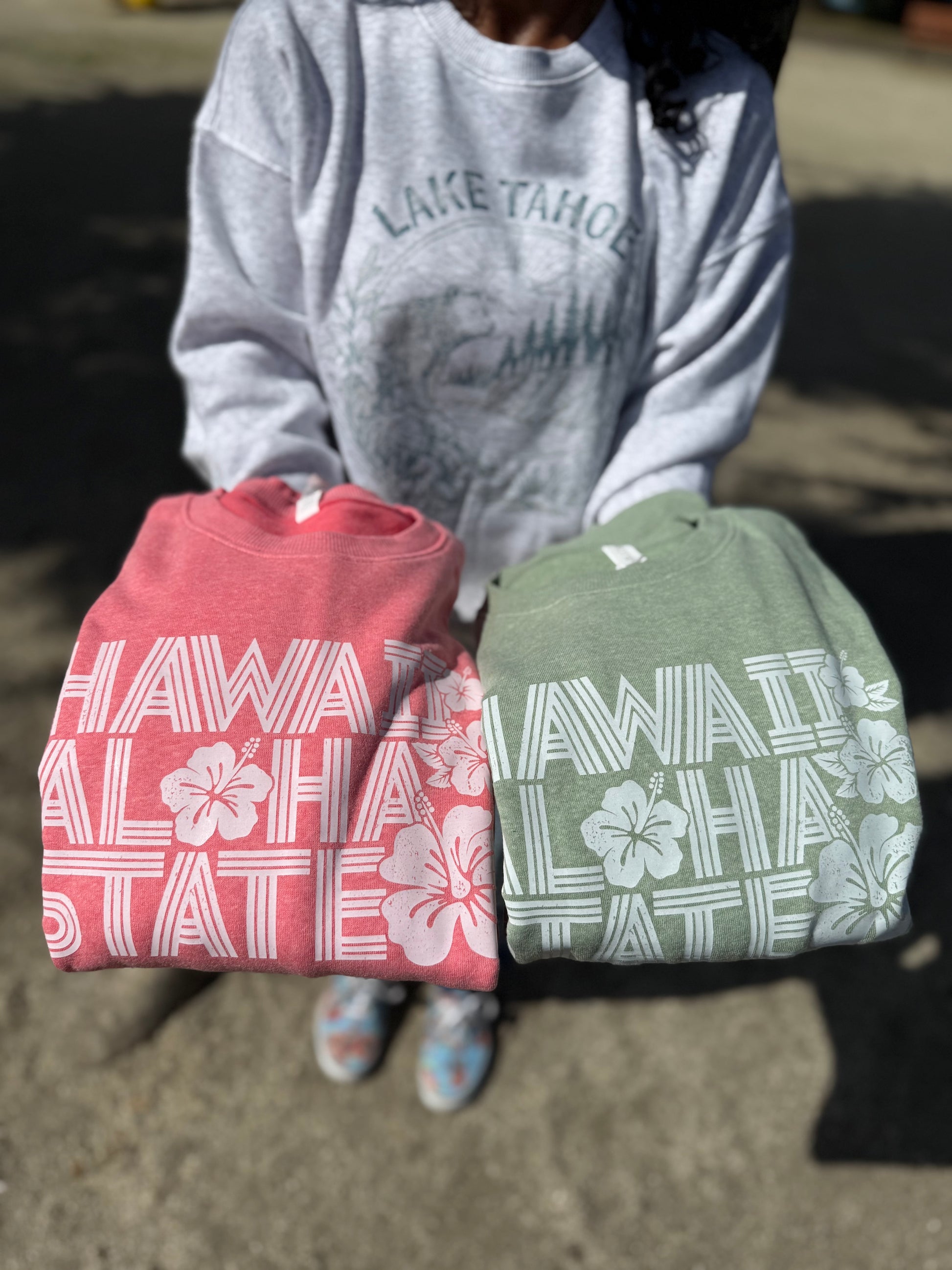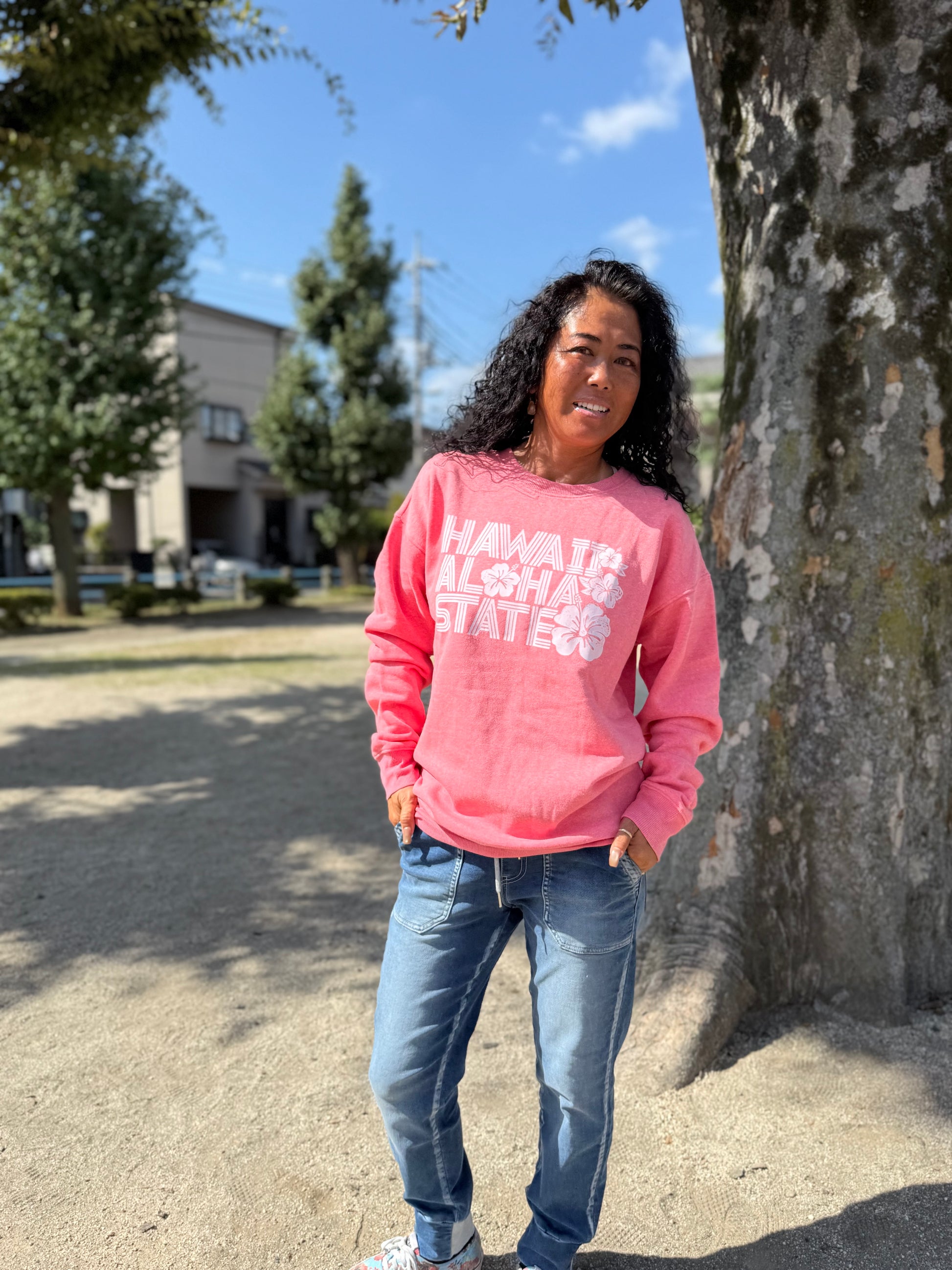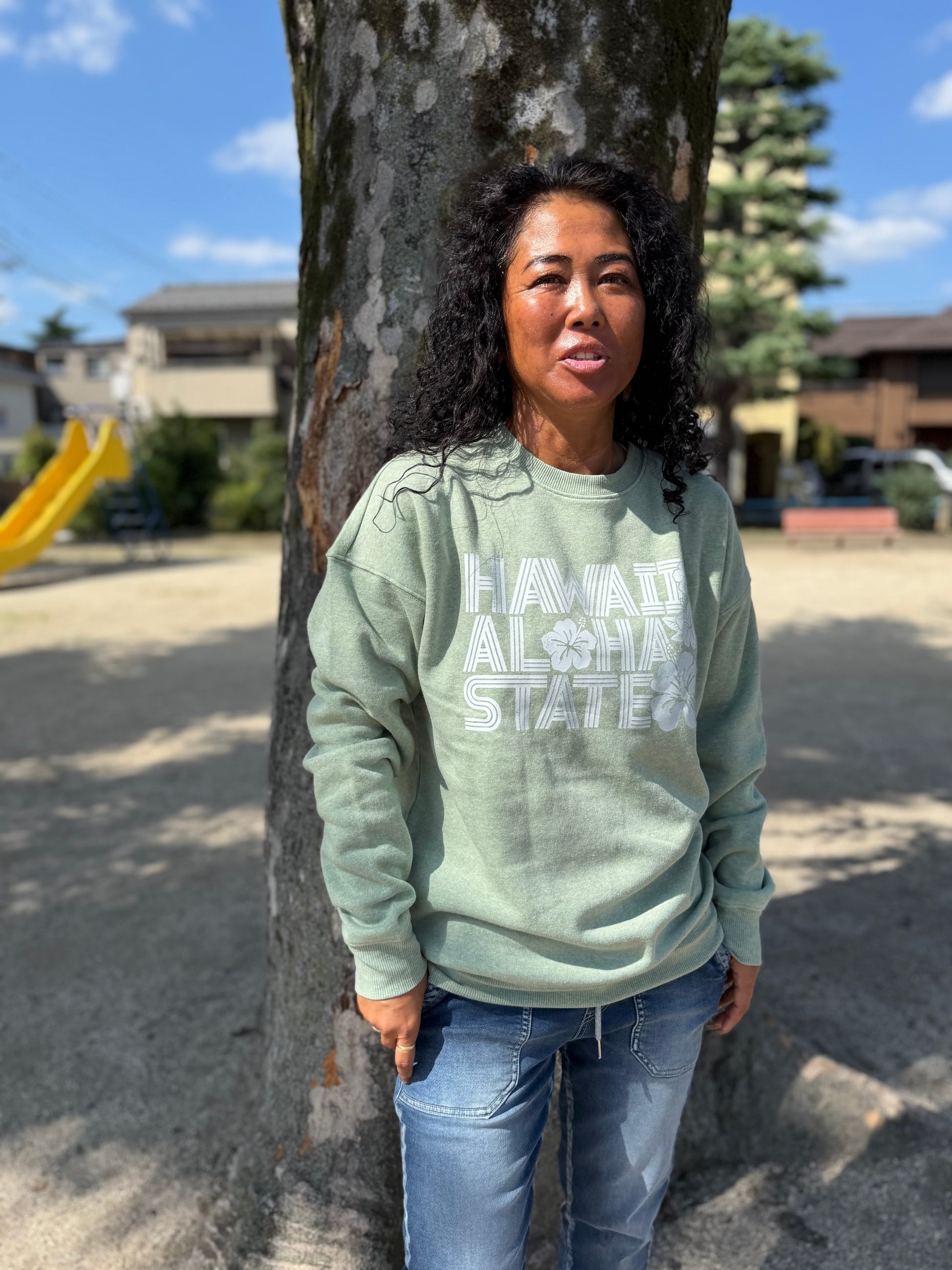 LAインポート「Honestee」の「Hawaii Aloha State」ロゴ入りスウェットシャツ。