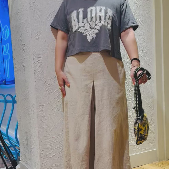 ALOHA! リラックス感たっぷりのオーバーサイズTシャツで、レトロなヤシの木のプリントが目を引く一枚。ショート丈で足長効果も!柔らかく通気性の良いコットン素材を使用し、カジュアルな外出やリラックスした週末コーデにぴったりです。