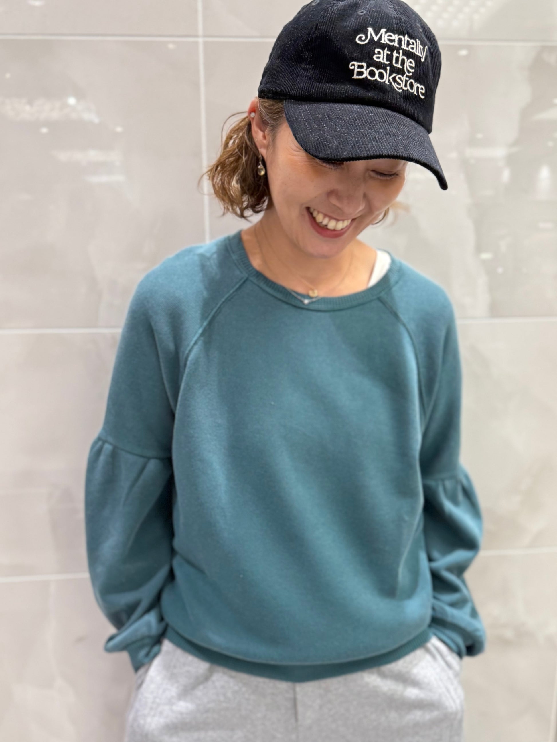 ラウンドネック、袖口、ウエスト、首周りリブ加工、ボリュームスリーブ、ピグメント加工(ピグメント染め)■素材・原産国・サイズ
