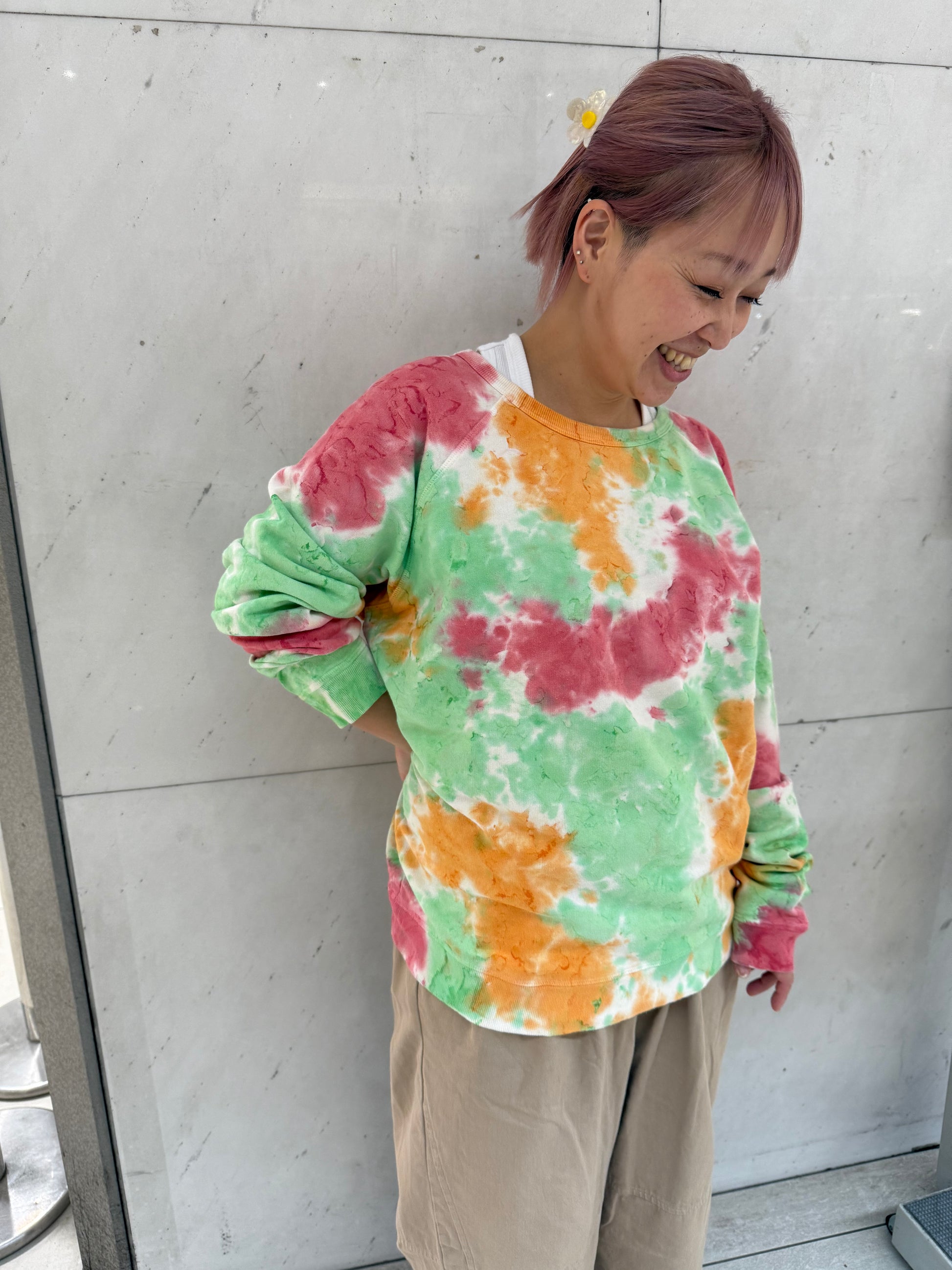 クルーネック、タイダイ染注:タイダイ染は一点一点染め上がりが異なります。画像と違う色味や柄の商品になることがありますことを予めご了承ください。