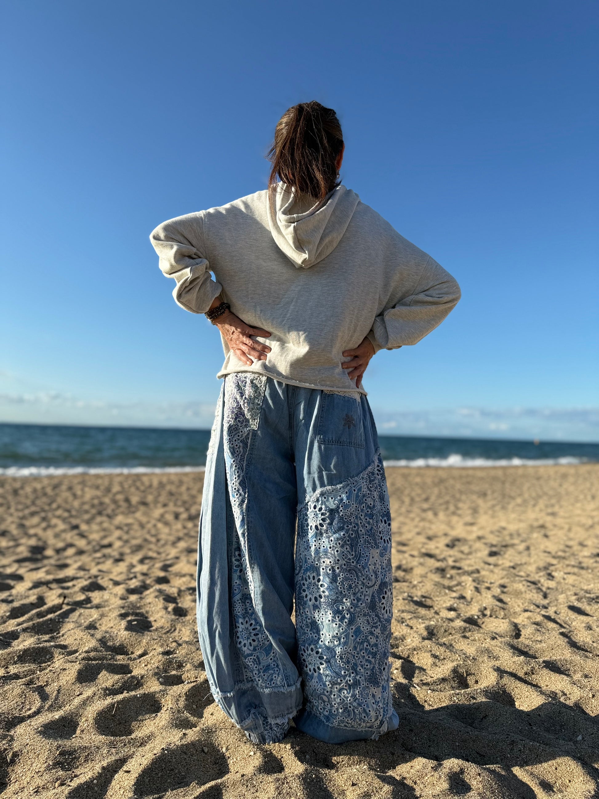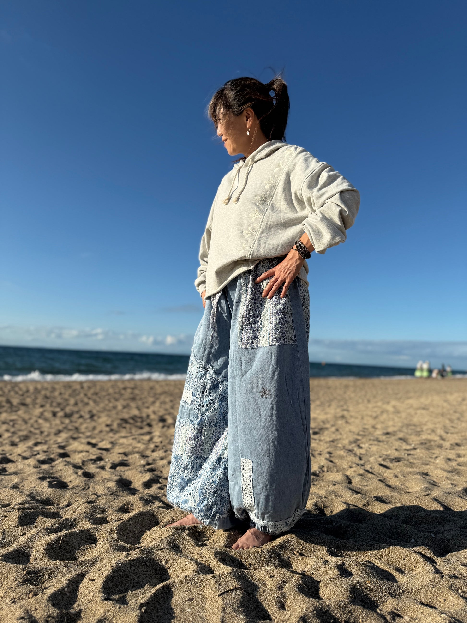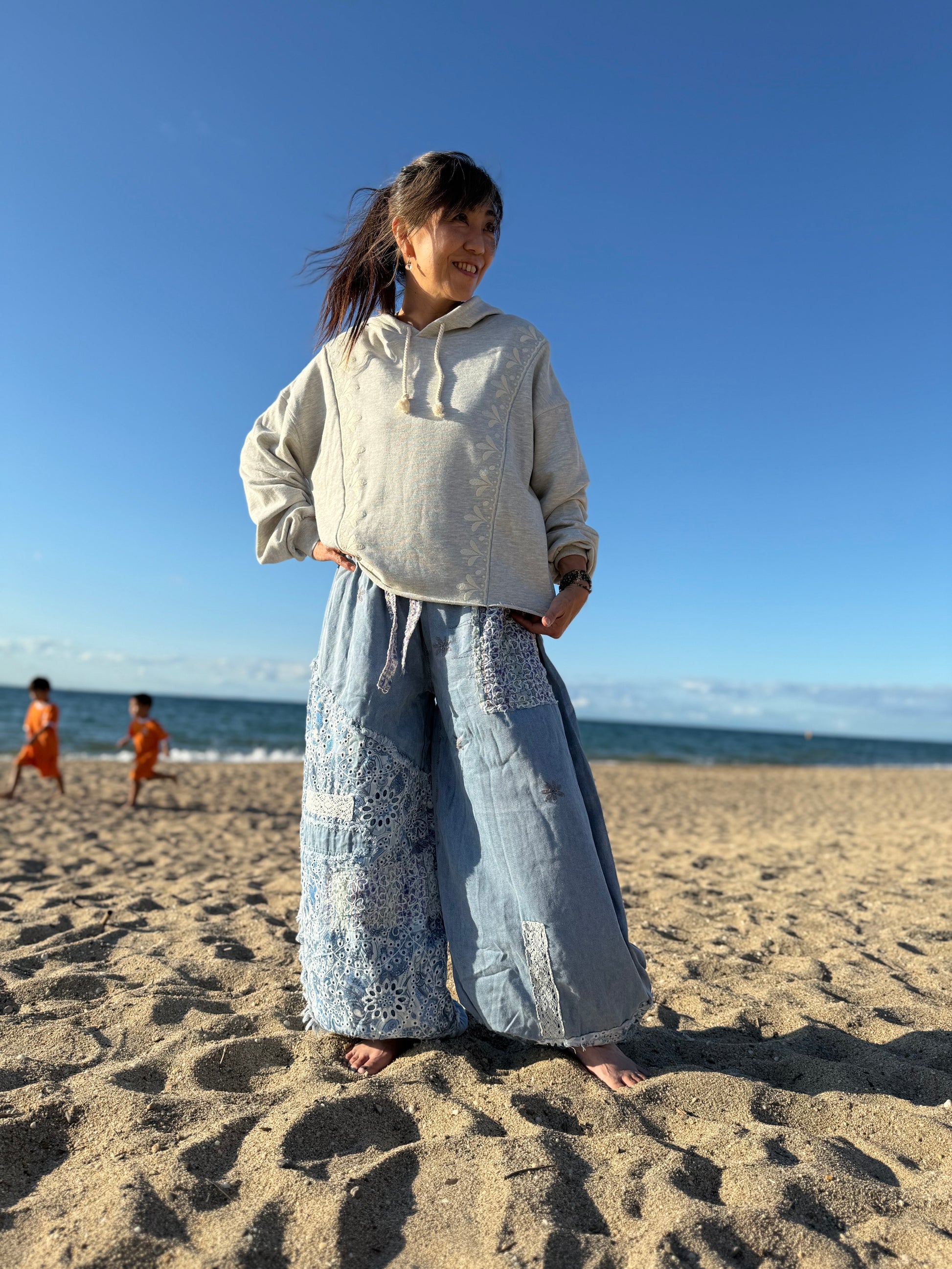 刺繍、フード付き、クロップド丈、裾等カットオフ■素材・原産国・サイズ