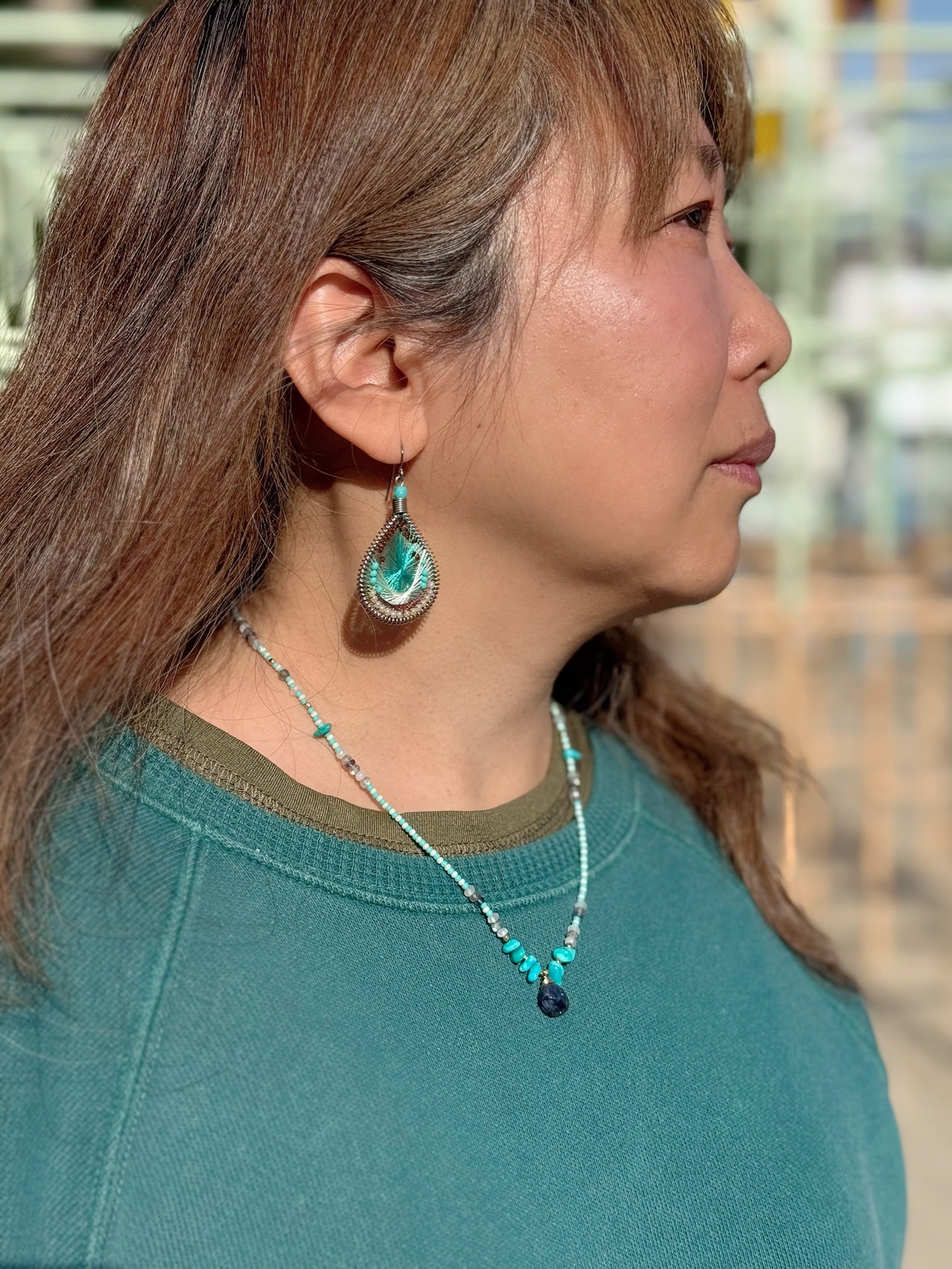 素材:サージカルスチール(フックのみ)、合金、糸、TOHOガラスビーズ