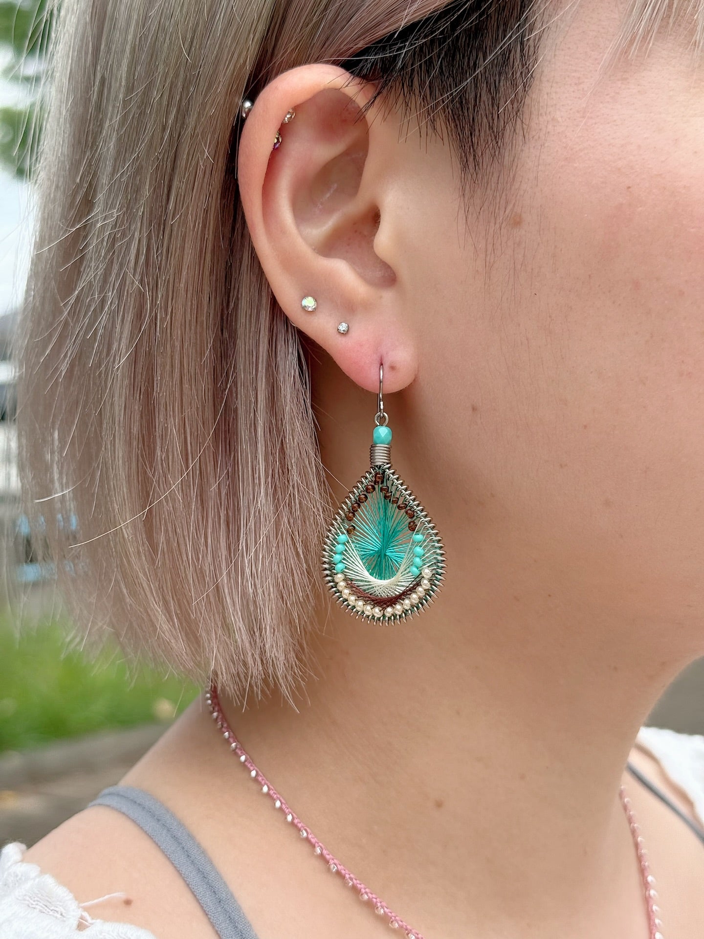 素材:サージカルスチール(フックのみ)、合金、糸、TOHOガラスビーズ