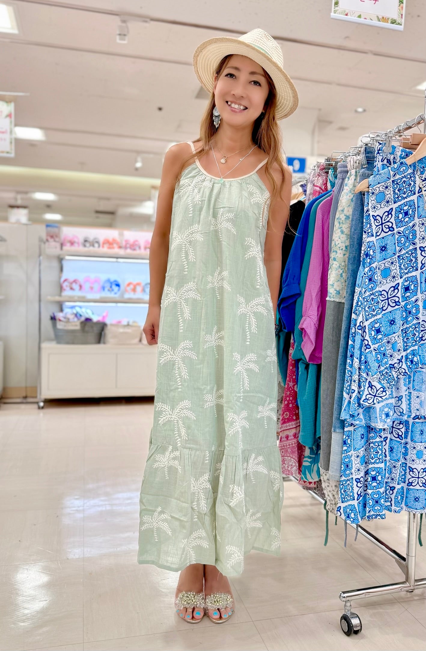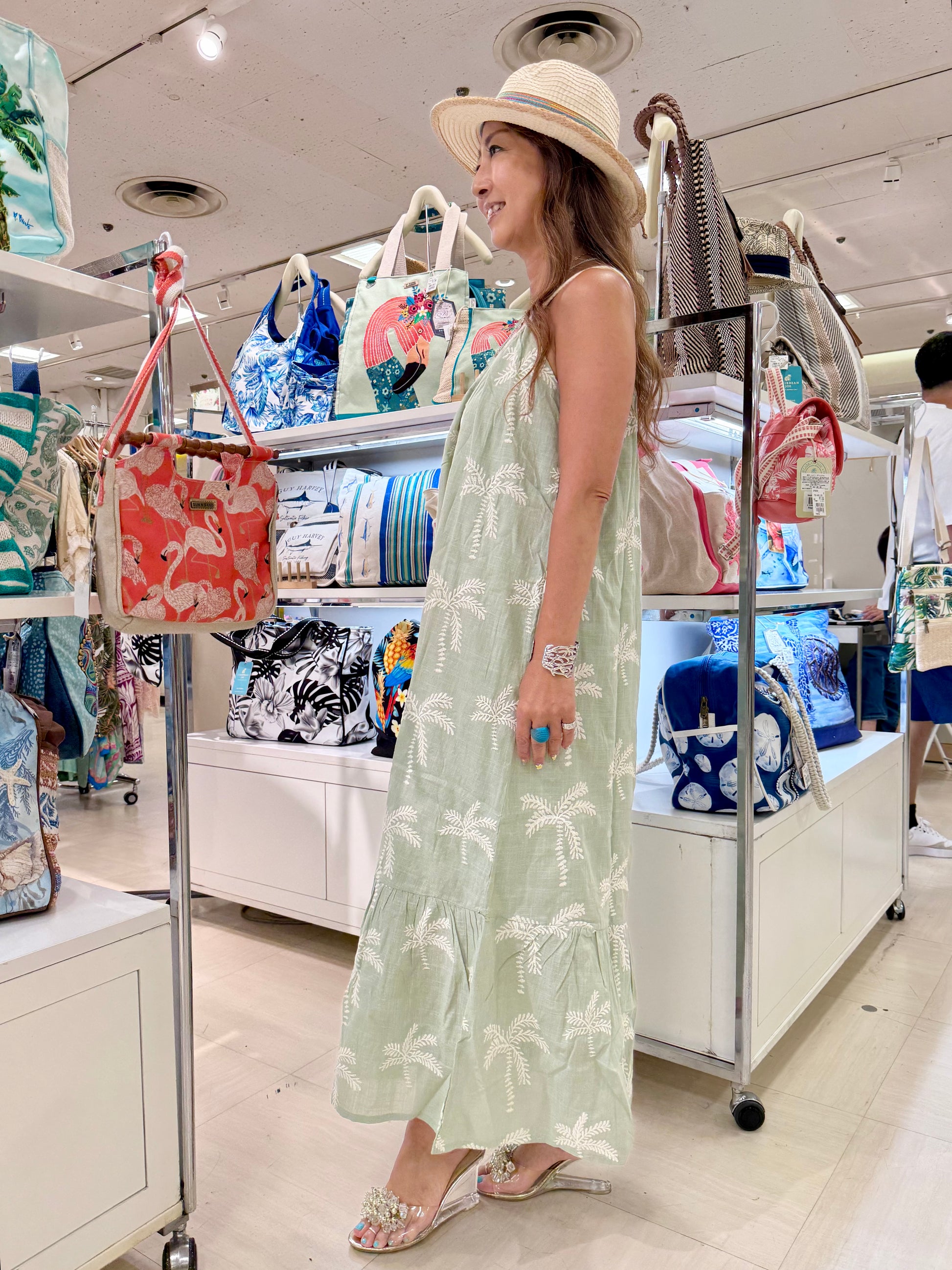 パームツリー刺繍 ティアードマキシワンピース