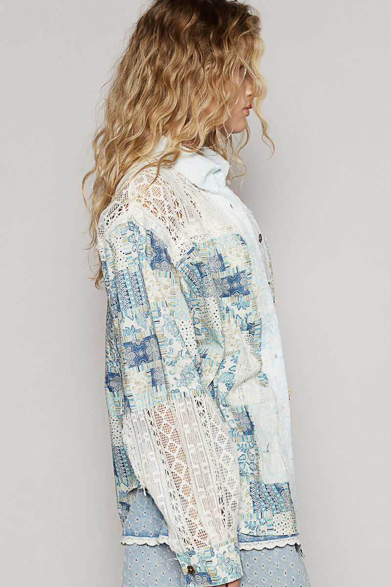 LAインポート「POL」 ディティールにこだわったデザインがポルらしい、プリントや、レースのパッチワークシャツです。 オーバーサイズなので、羽織としても活躍します。