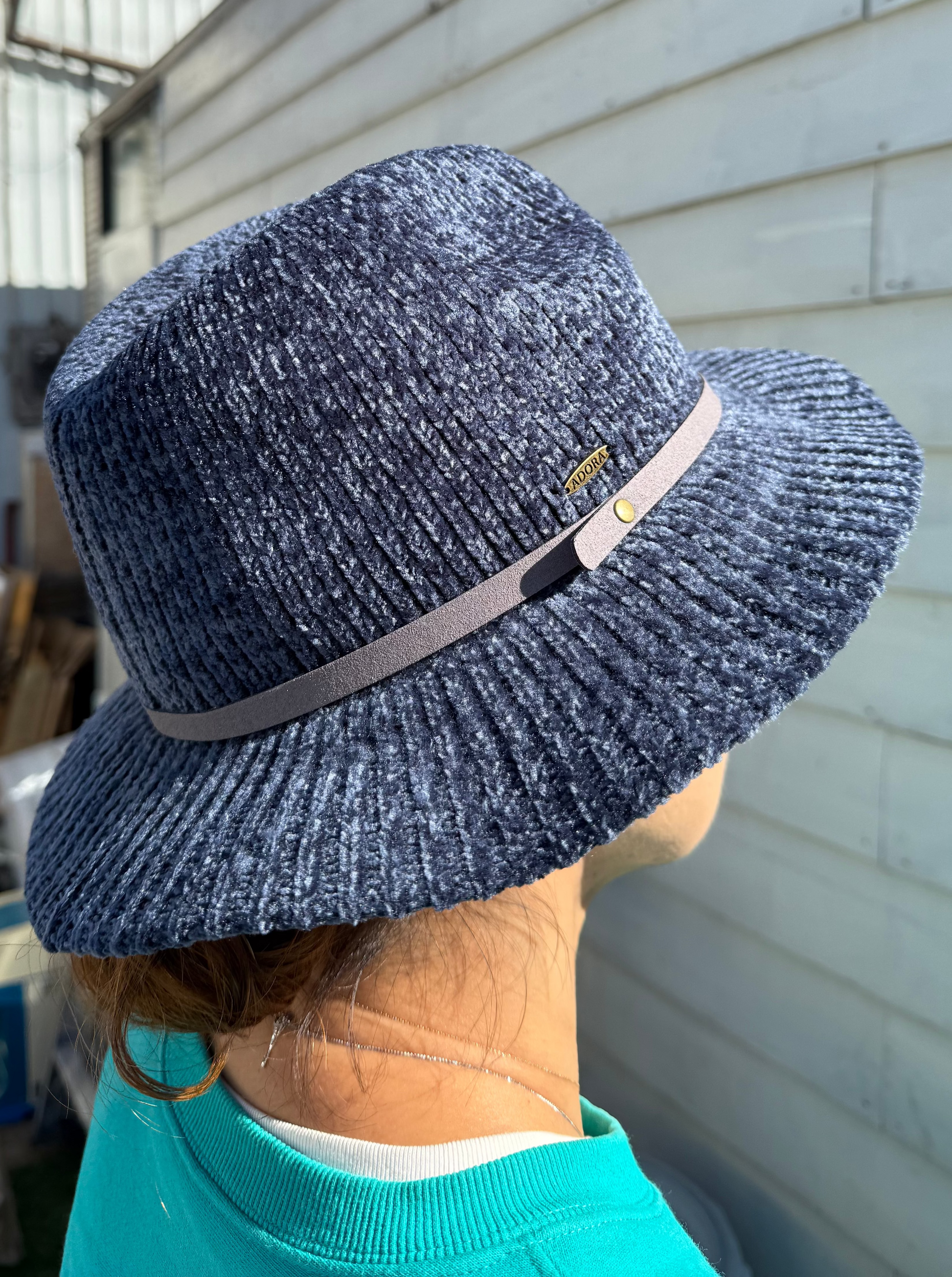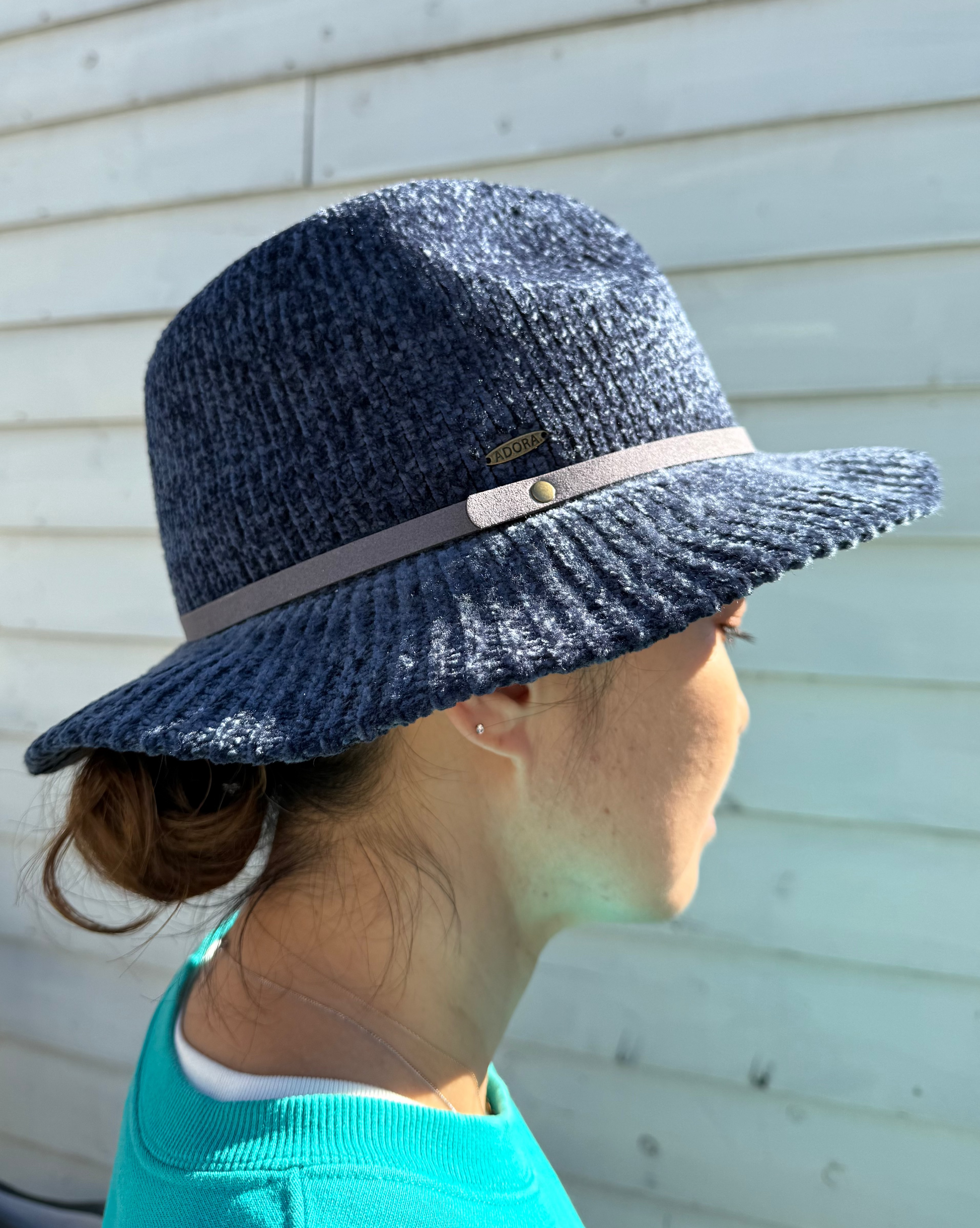 ポリエステル素材で軽く、長時間かぶっていても疲れにくいのが特徴です。ほどよい畝(うね)の立ったコーデュロイ調の生地が、季節感のある上品な雰囲気を演出。