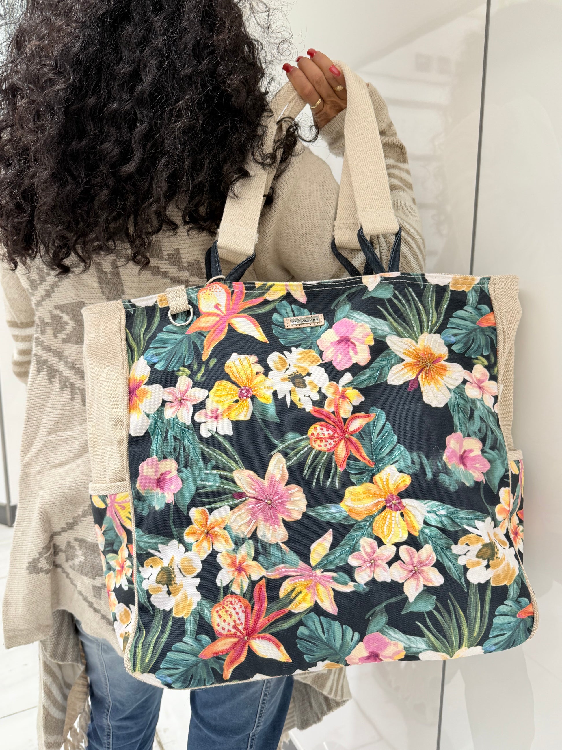 SunNSand トロピカルフラワーショルダートート(Caribbean Joe)