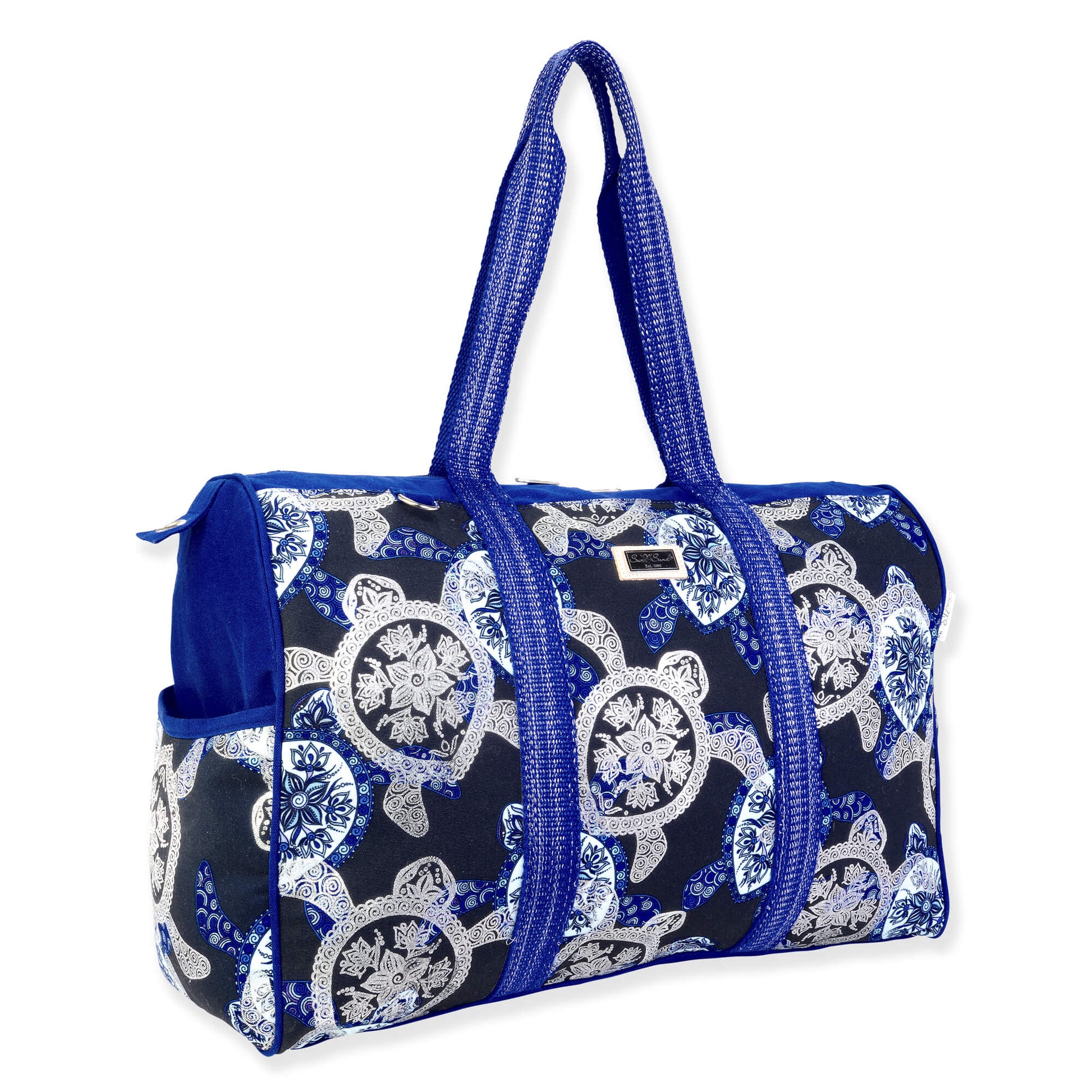 サンアンドサンド、ホヌ柄が存在感たっぷりのトートバッグ。黒地で、夏だけではなく、1年中活躍する、ボストンバッグです。