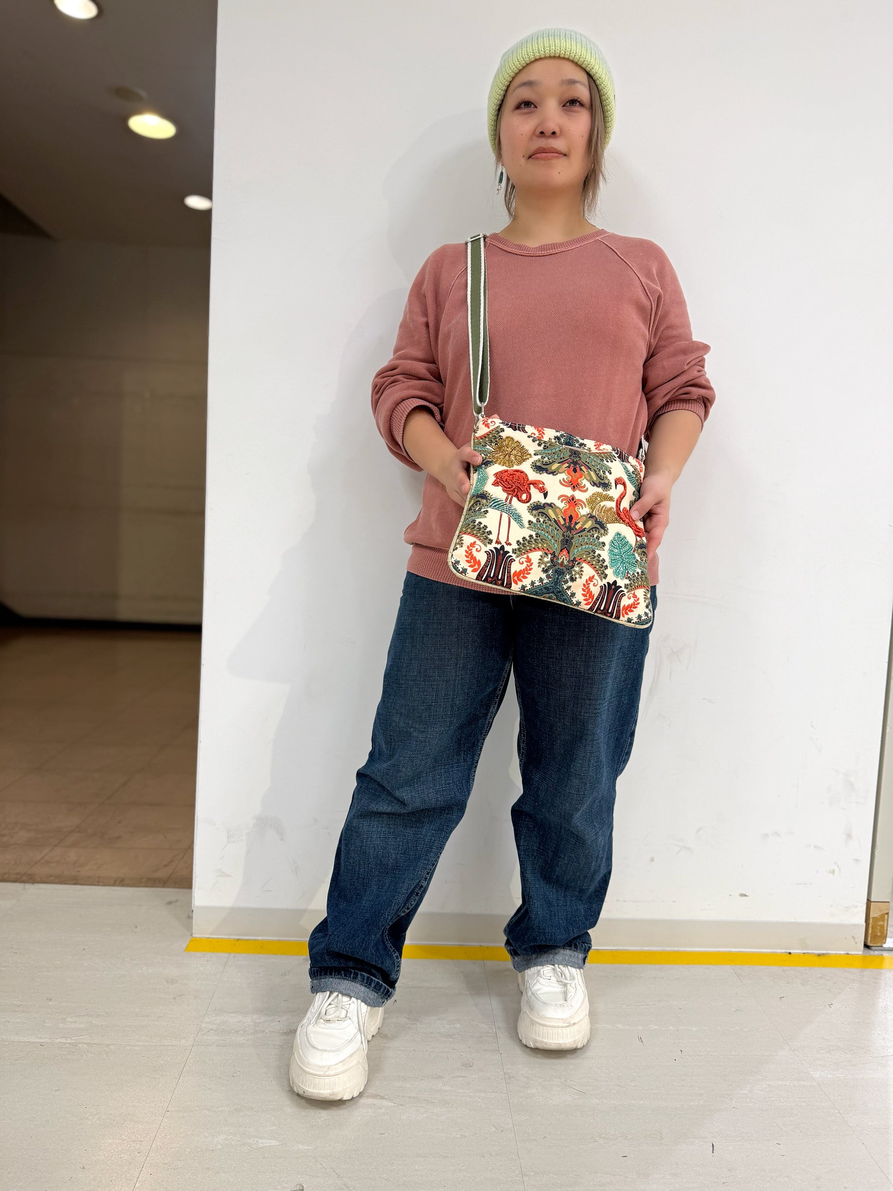 サンアンドサンド 華やかなフラミンゴ柄が目を引くショルダーバッグです。