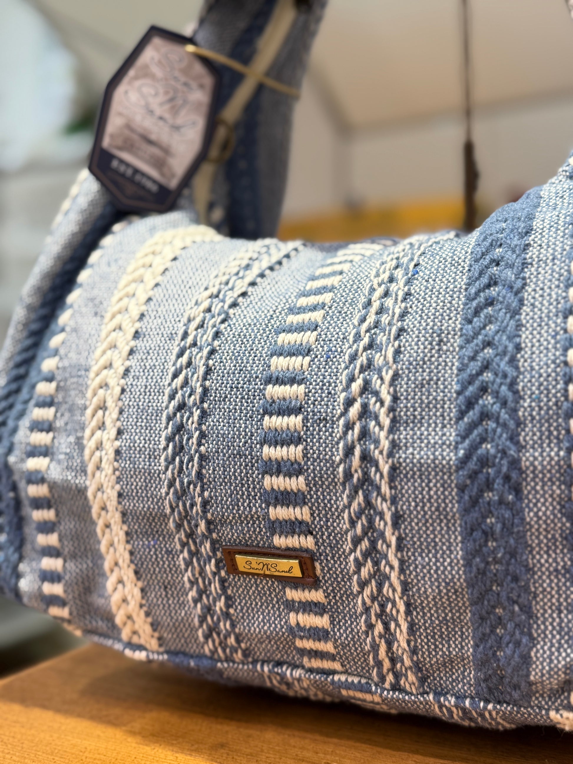 SunNSand ブルーストライプ 織り柄ワンショルダートート